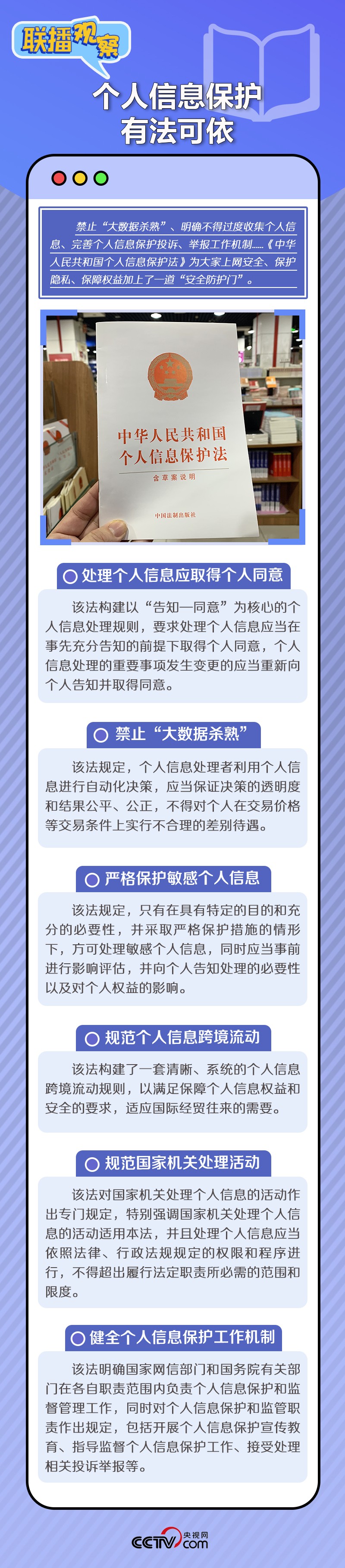 互聯網的普及,讓個人信息保護成為廣大網民關心的問題。習近平總書記始終把關乎人民幸福感、安全感的個人信息保護放在心上,明確要求保障個人信息安全,維護公民在網絡空間的合法權益。近年來,我國在相關立法保障方麵做了哪些努力?個人信息保護取得哪些成果?央視網《聯播觀察》帶您一起了解。