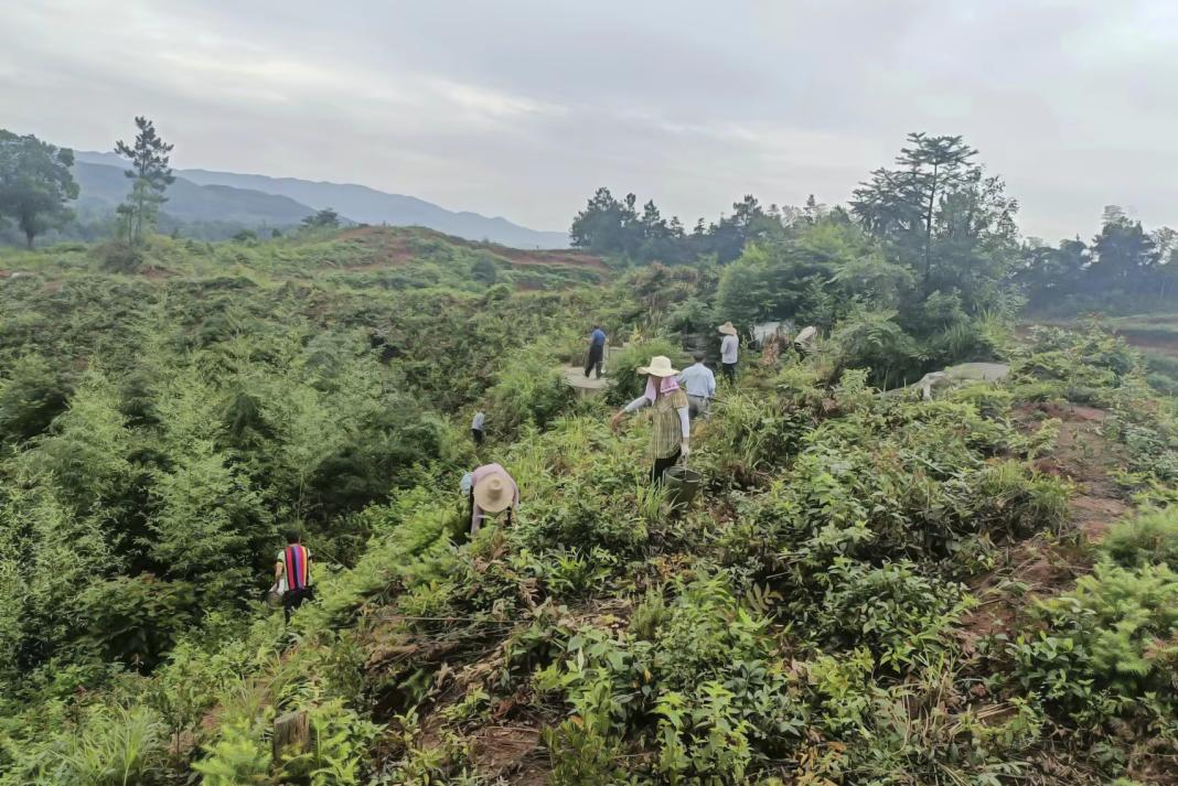 村民們在油茶基地除草勞作
