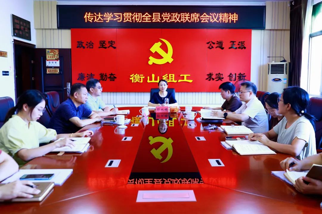 會上,彭雙娣傳達了全縣黨政聯席會議精神,特別是衡陽市政協副主席、衡山縣委書記戴新賢對組織工作提出的要求。要緊扣考核目標,強化統籌對接。聚焦年度市對縣考核優秀方陣目標,積極對接市級部門抓實抓細考核工作,推動全縣各項工作提質增效。要聚焦旅發大會,狠抓項目建設。全力抓好旅發大會觀摩項目建設,緊盯紫蓋峰片區項目推進關鍵環節,厘清責任分工,加強調度力度,確保各項目高質高效完成,以亮眼成果為大會增彩。要強化考察識別,精準選任幹部。充分發揮職能作用,注重在旅發大會中分類考察、精準識別幹部,激勵幹部勇於擔當、積極作為。
