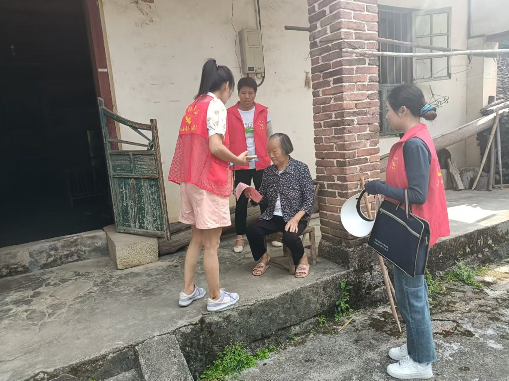 圖為下村入戶宣傳民調、醫保收繳工作
