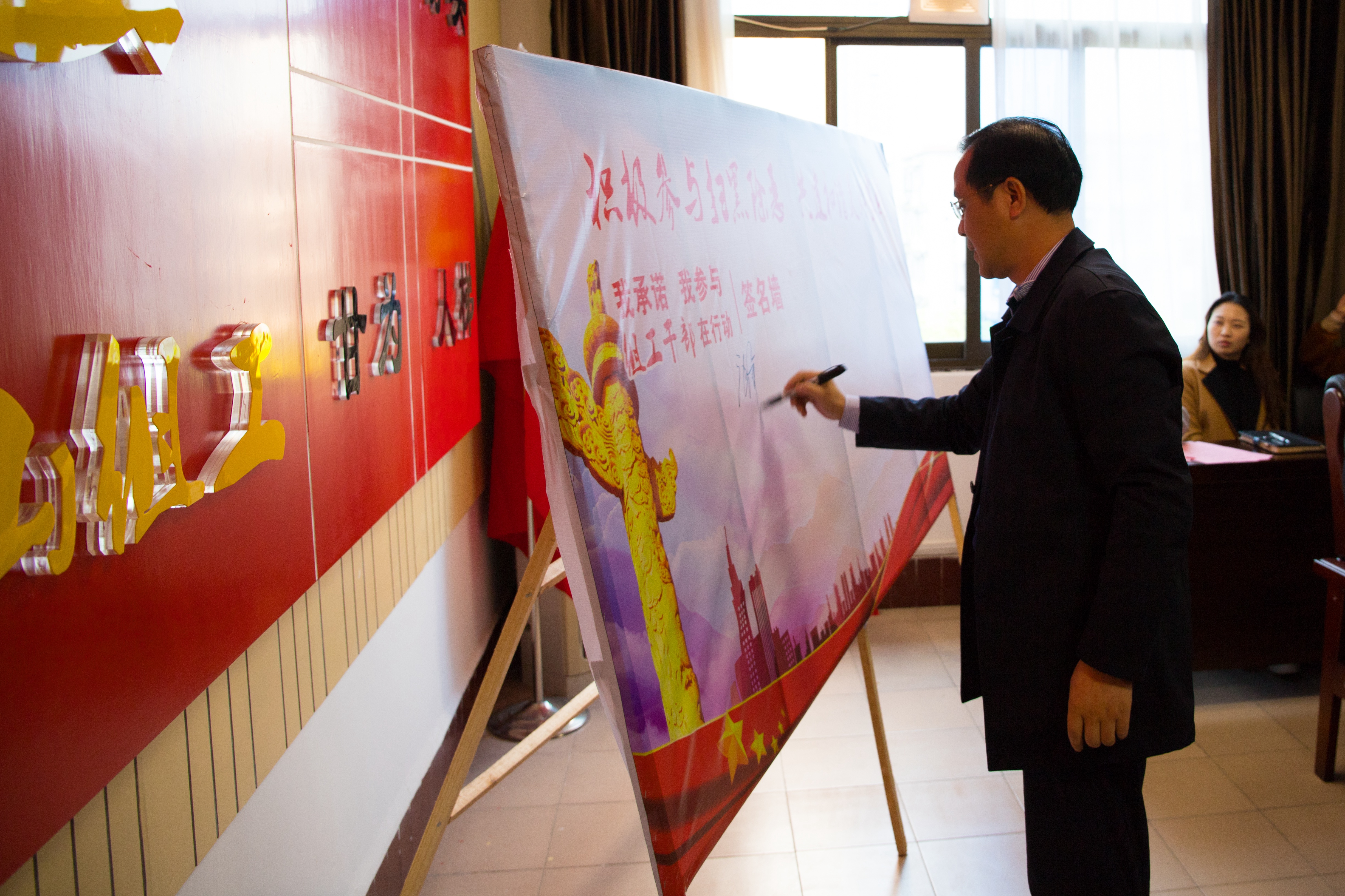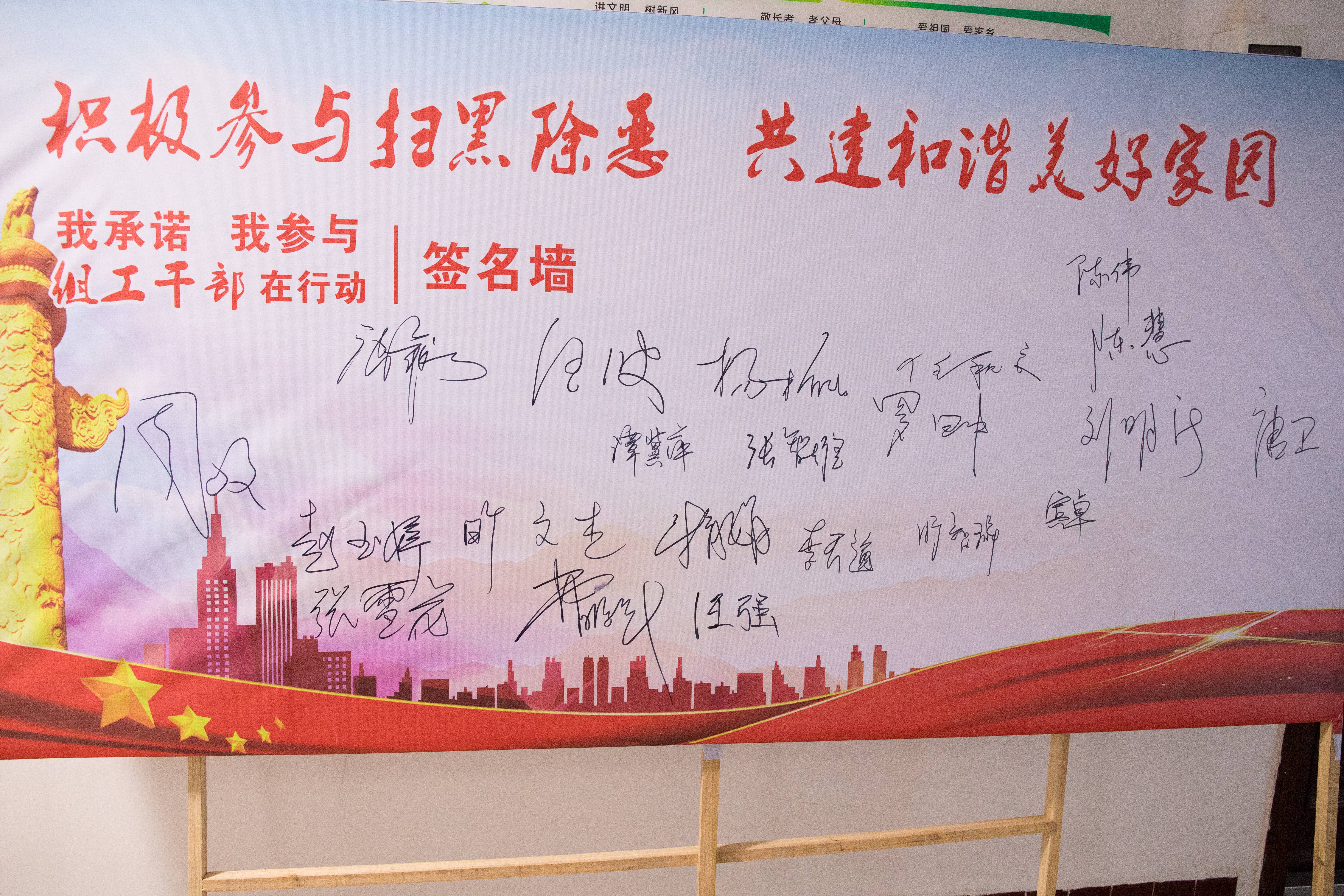 活動中,部機關全體黨員簽訂了《組工幹部積極參與掃黑除惡專項鬥爭承諾書》,並在“積極參與掃黑除惡,共建和諧美好家園”的主題簽名牆上簽名。