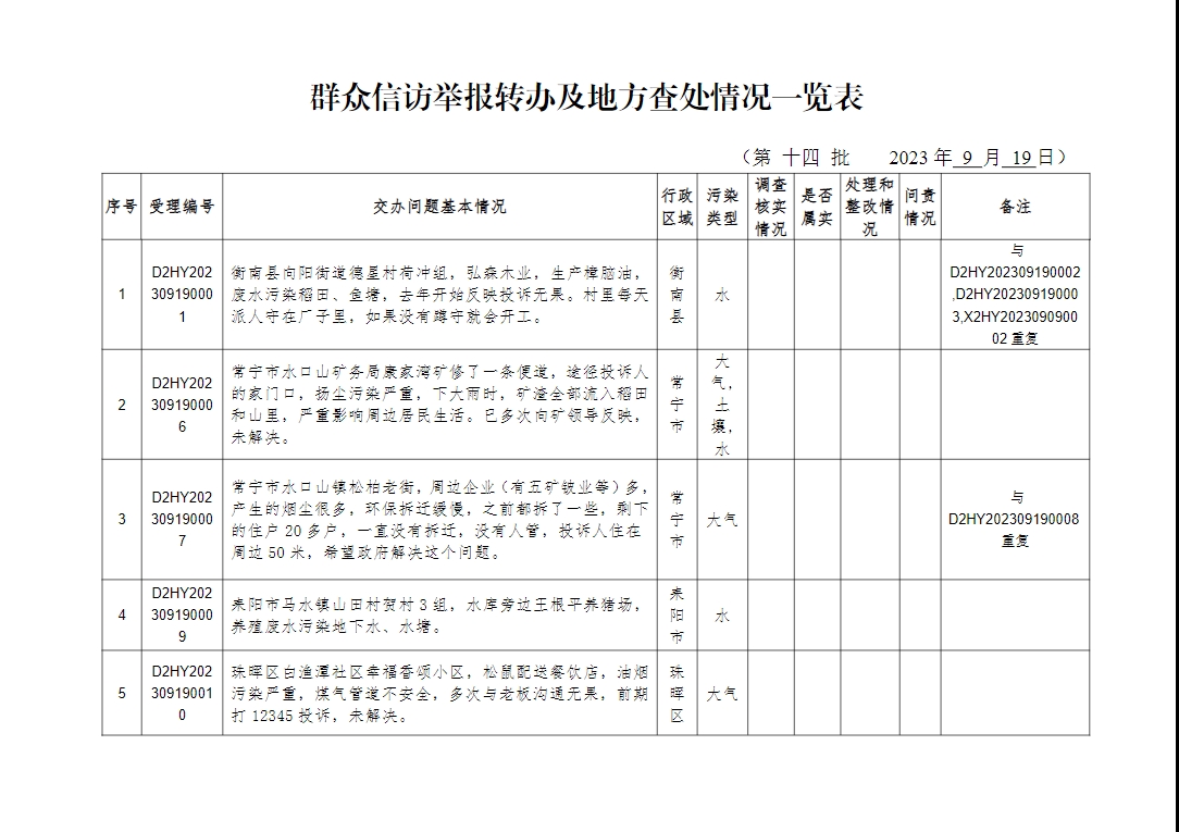 群眾信訪舉報轉辦及地方查處情況一覽表(第十四批)