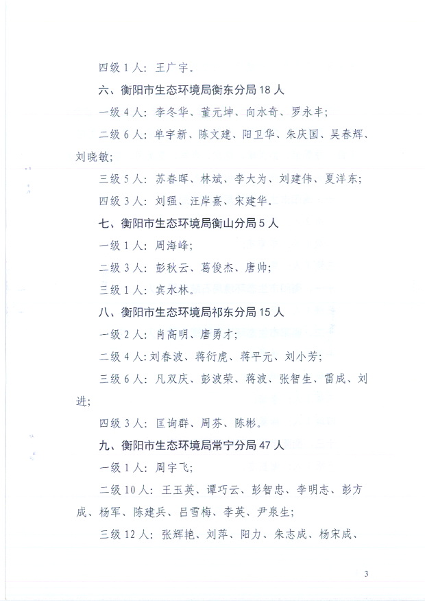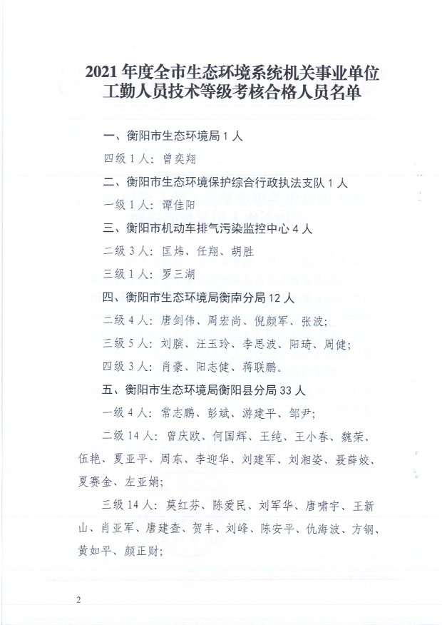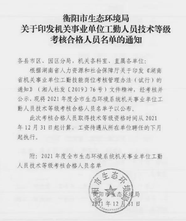 2021年度全市生態環境係統機關事業單位工勤人員技術等級考核合格人員名單公示
