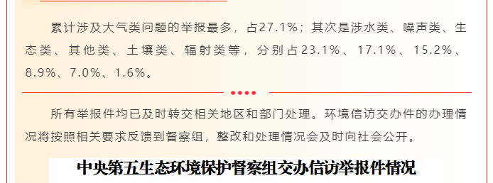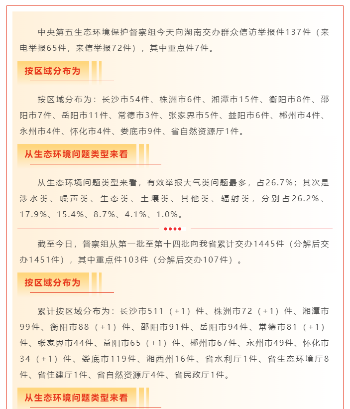 中央第五生態環境保護督察組向湖南交辦第十四批信訪件137件