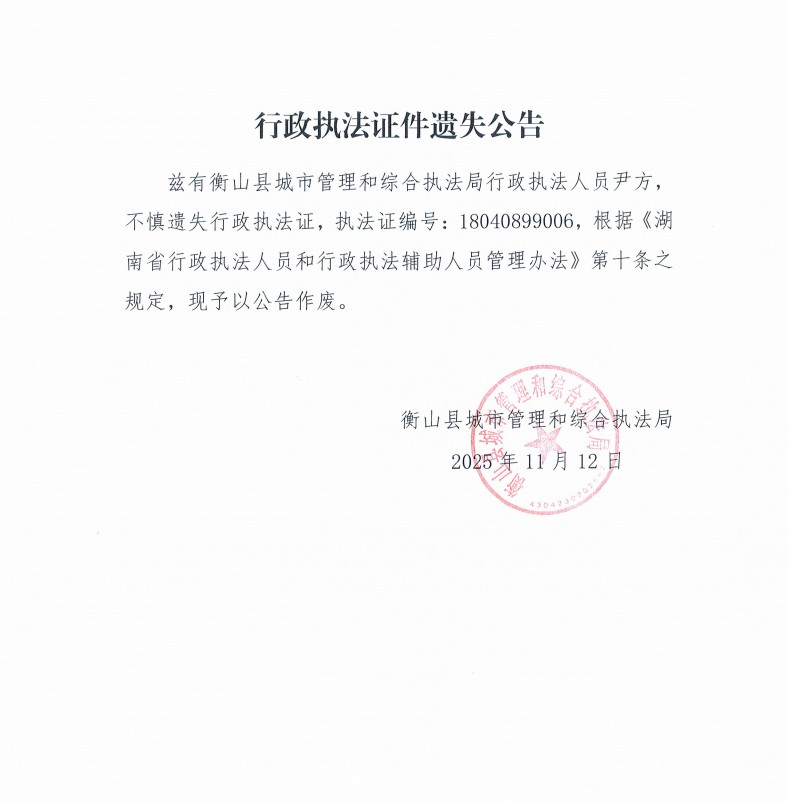 行政執法證件遺失公告
