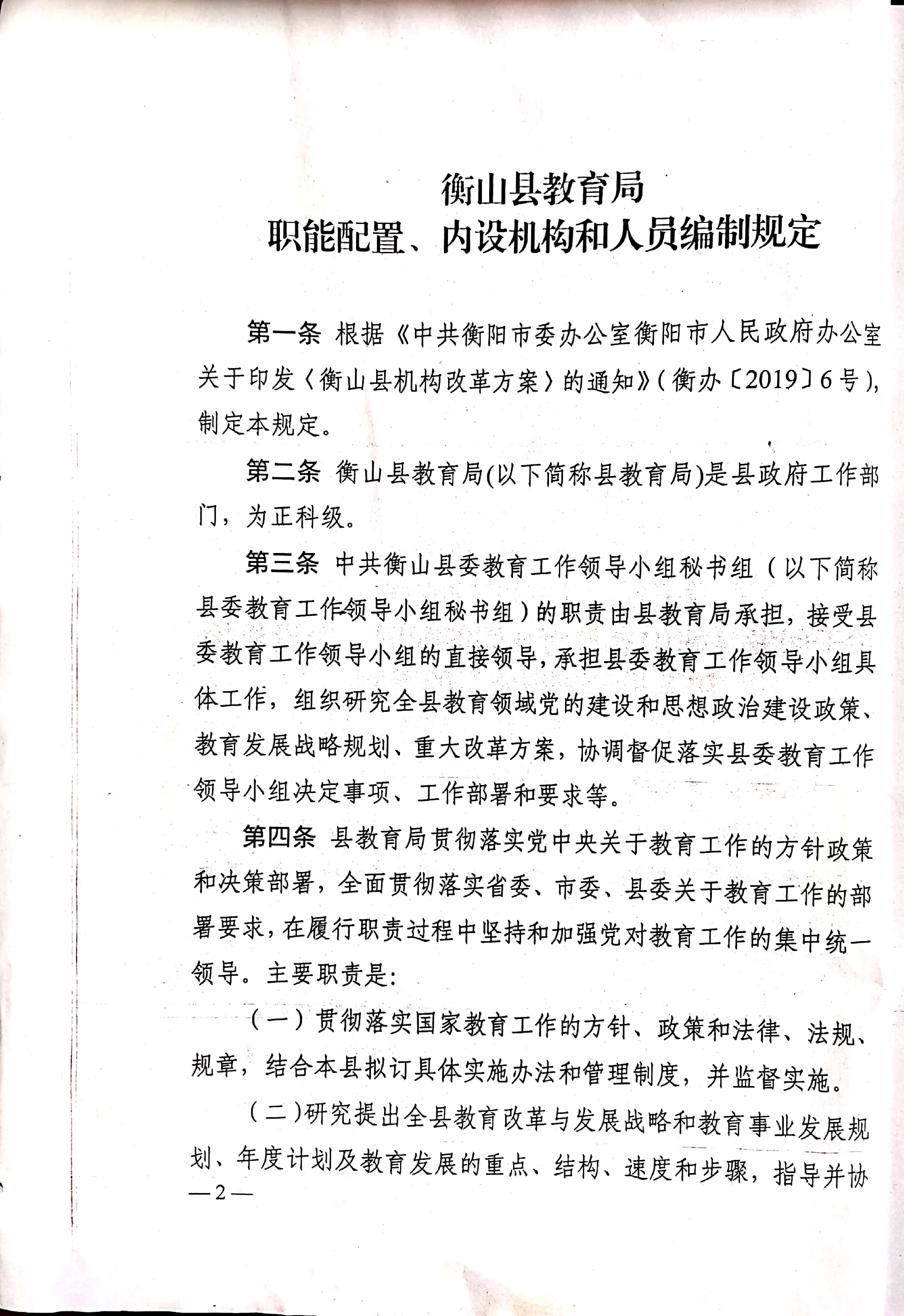 衡山縣教育局職能配置、內設機構和人員編製規定