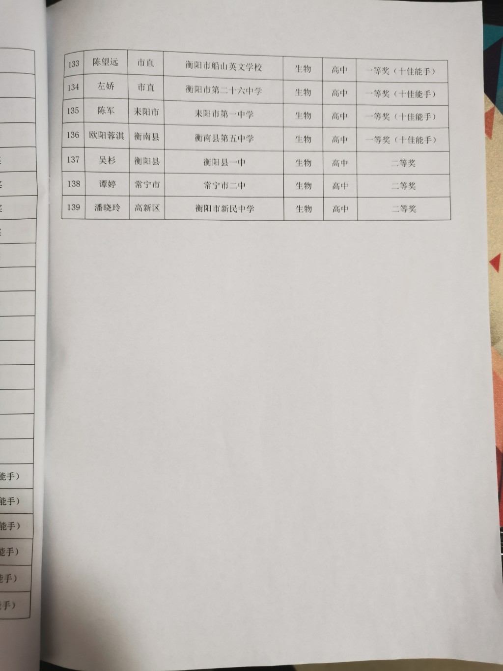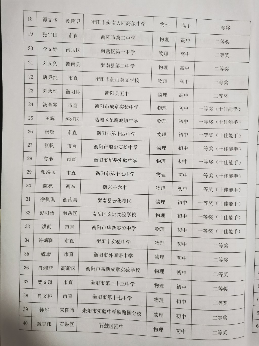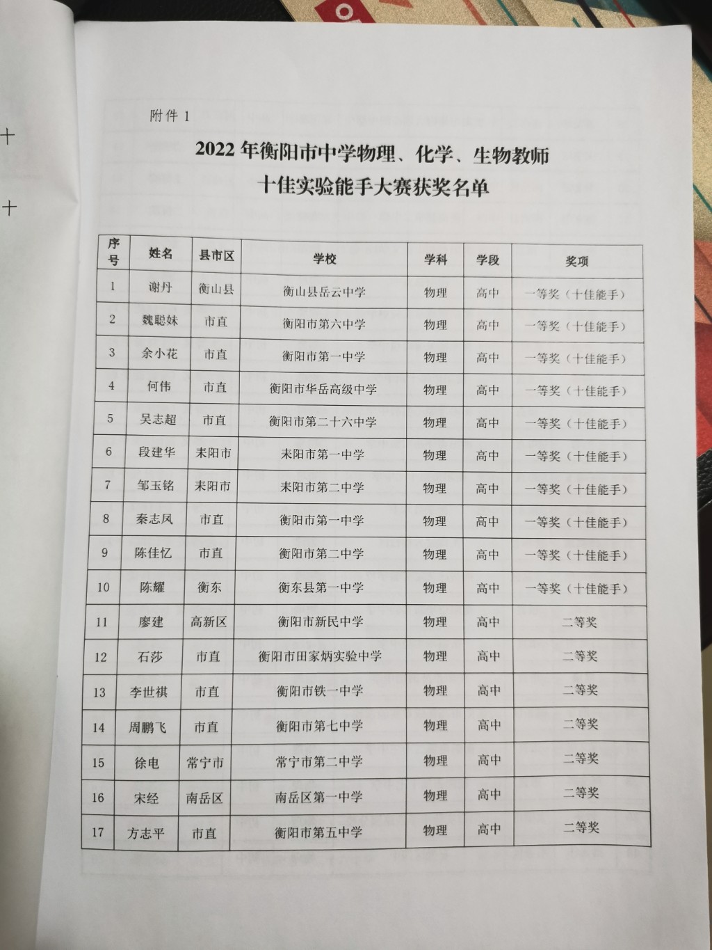 關於2022年衡陽市中學物理、化學、生物教師十佳實驗能手大賽結果的通報