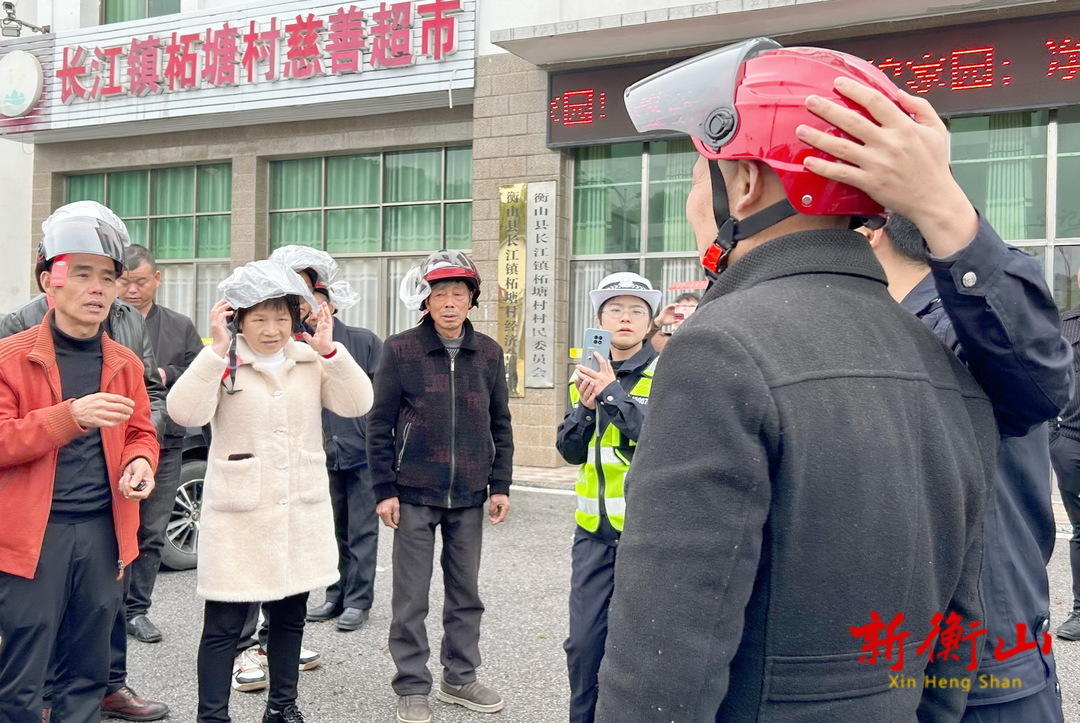 隨後,民警來到了長江鎮柘塘村,為當地村民培訓交通安全知識。課堂上,民警向村民們宣講了涉摩涉電、非法載人以及農村道路交通安全出行提示等內容。民警還為村民們送上了安全頭盔,現場為他們講解如何正確規範佩戴,並叮囑他們在騎車的過程中要自覺遵守交通規則,規範佩戴安全頭盔,做到文明出行。