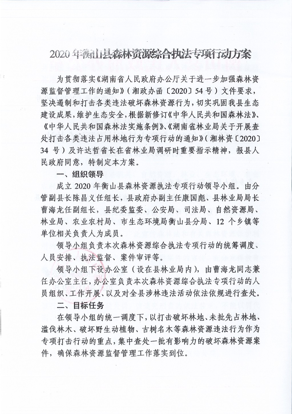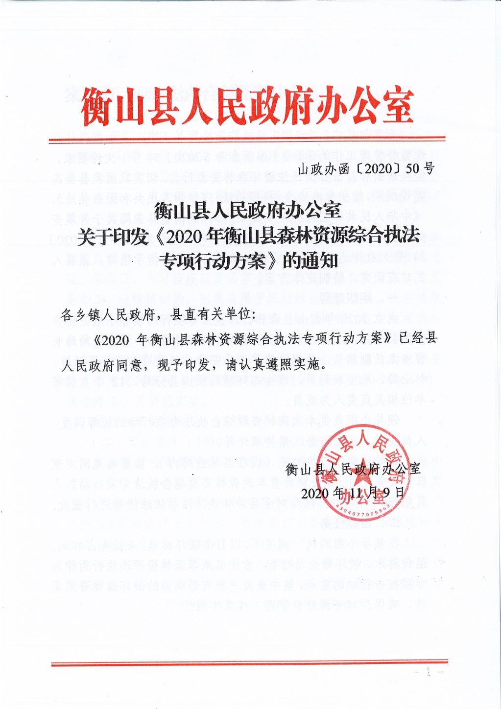 關於印發《2020年衡山縣森林資源綜合執法專項行動方案》的通知