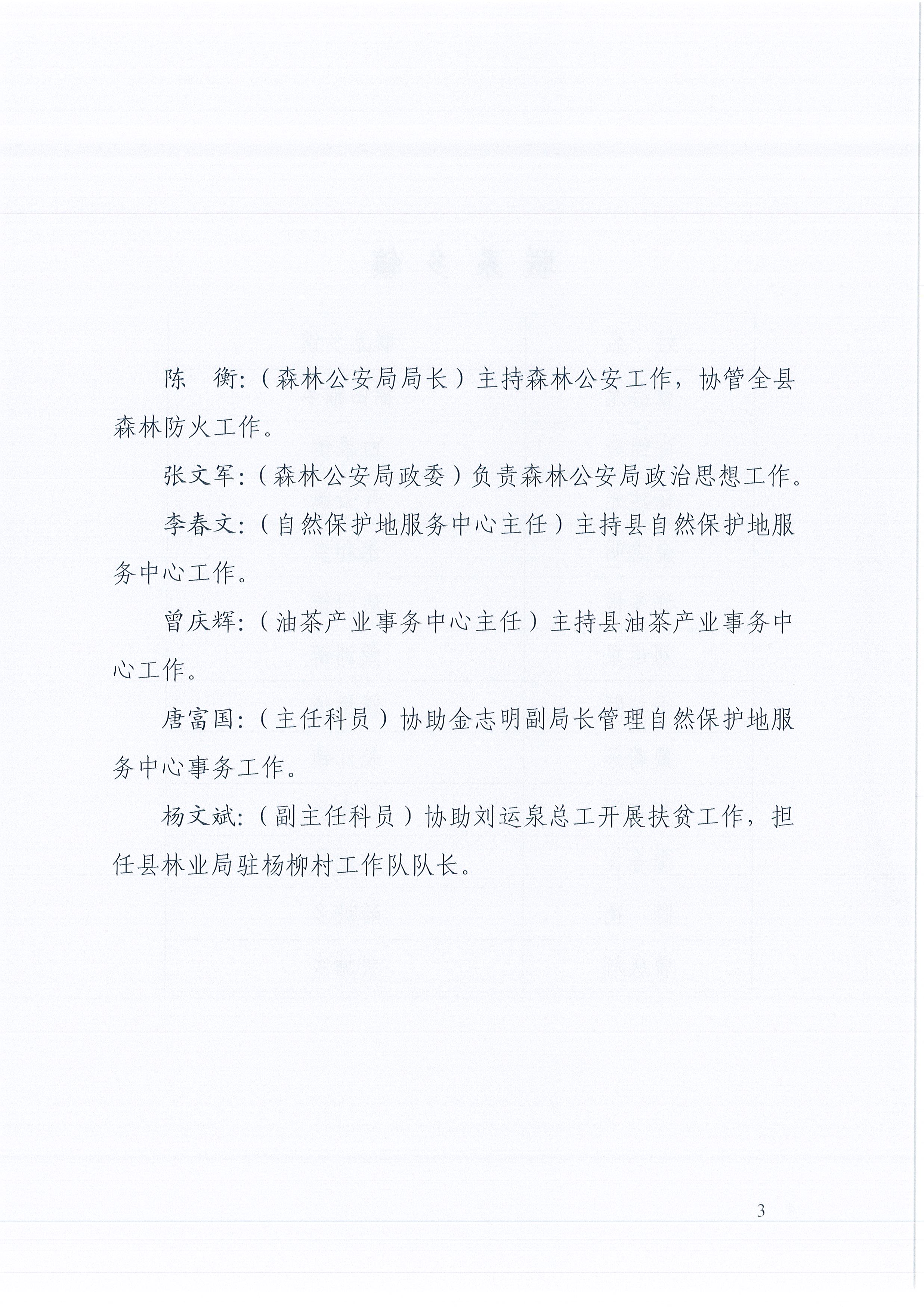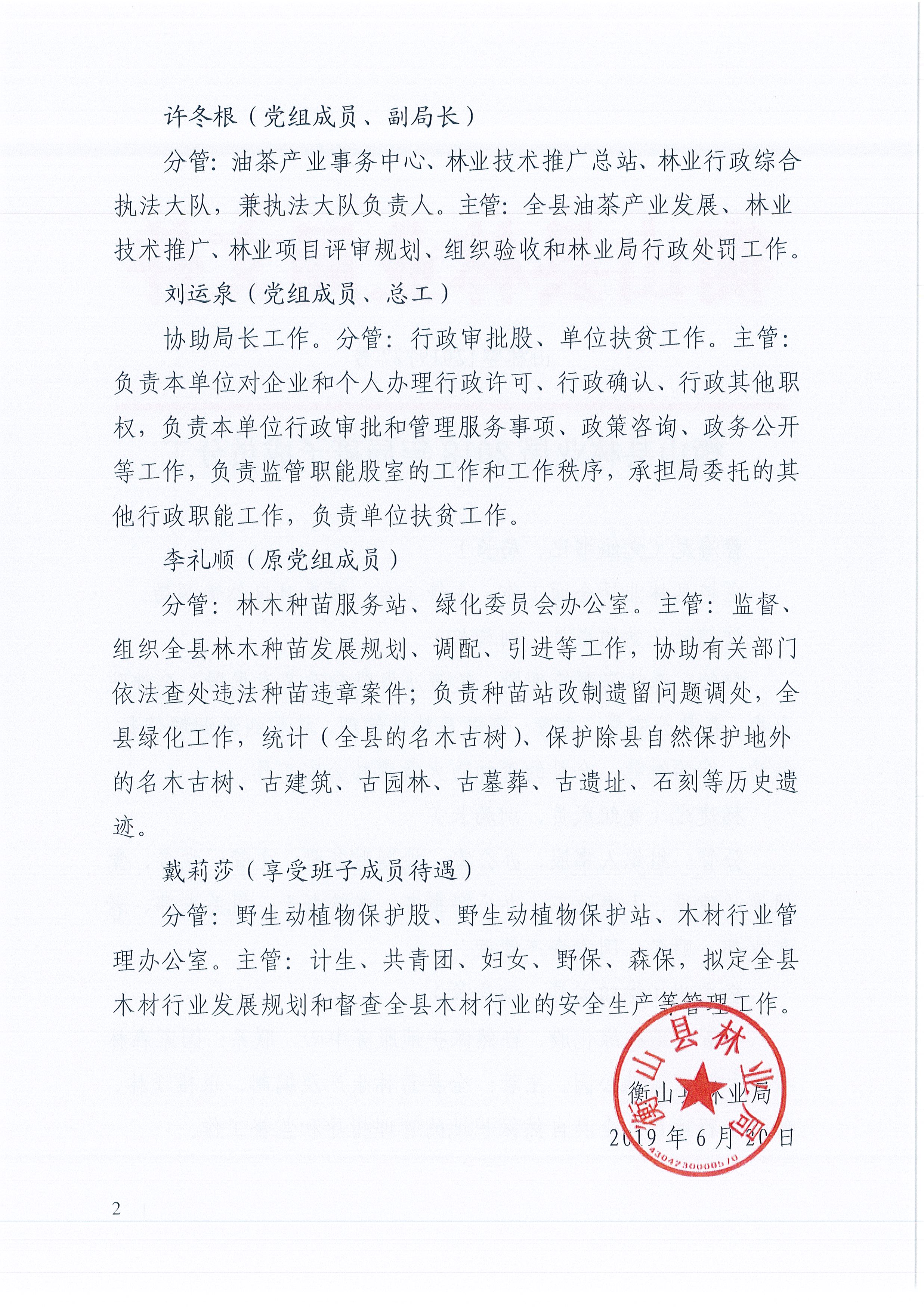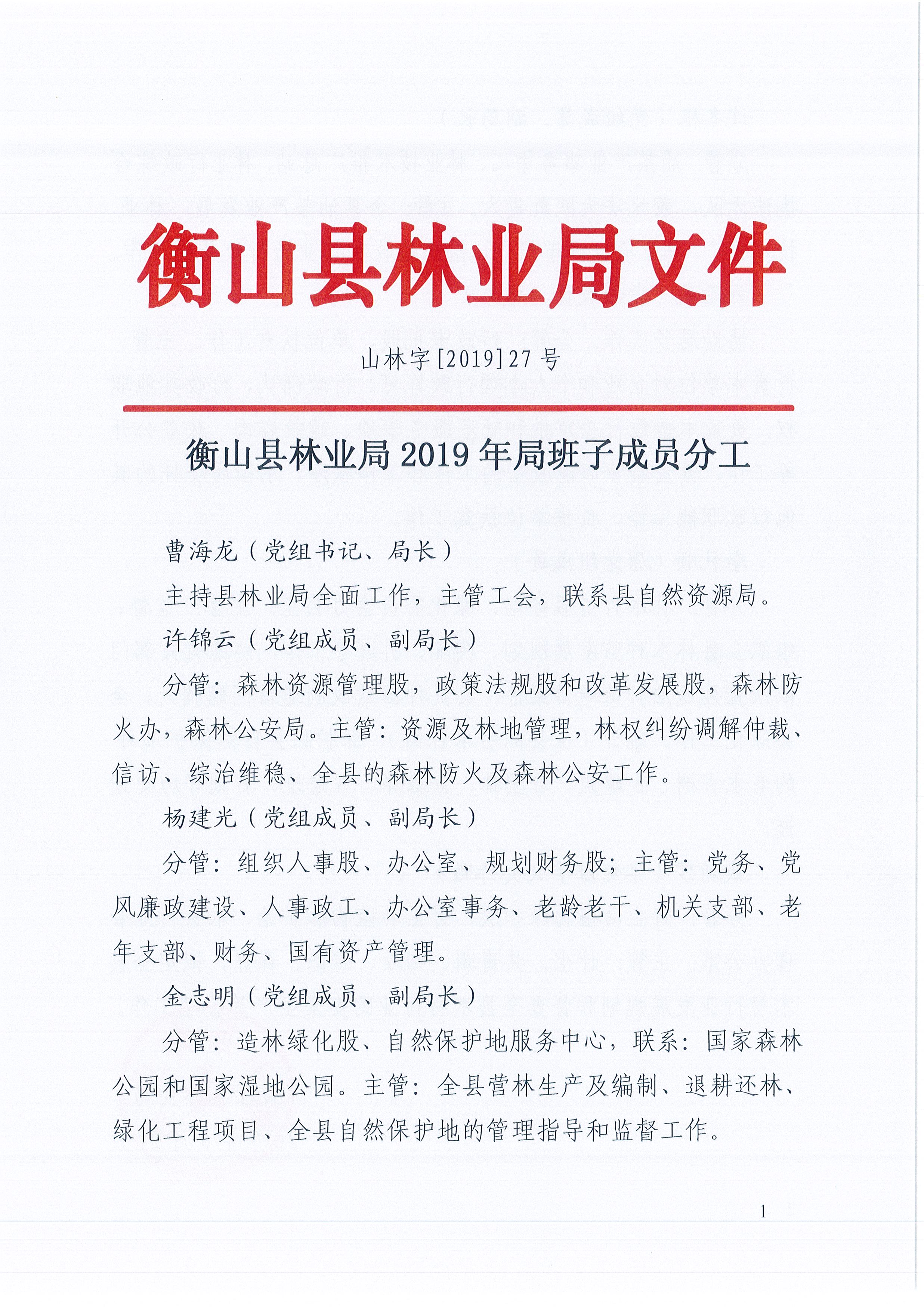 衡山縣林業局2019年局班子成員分工