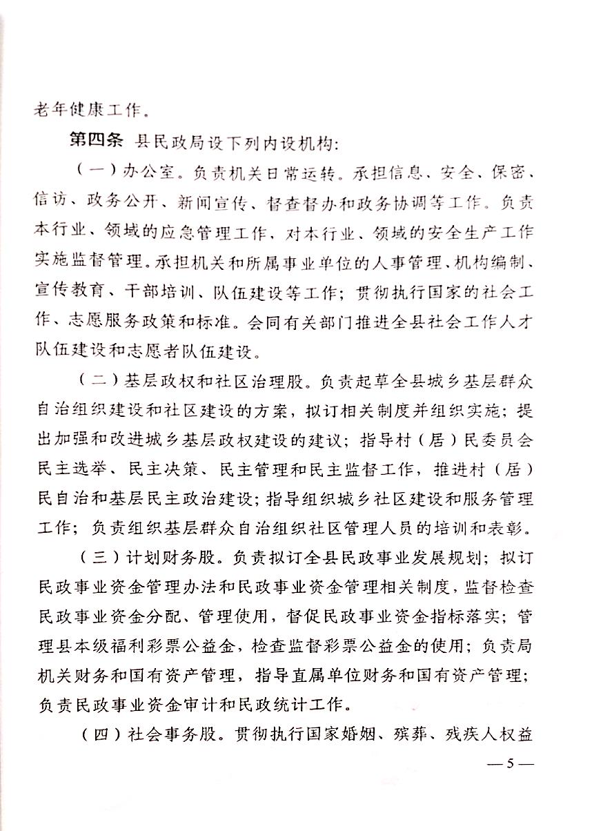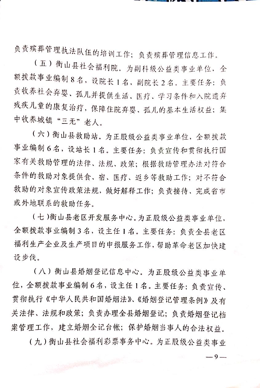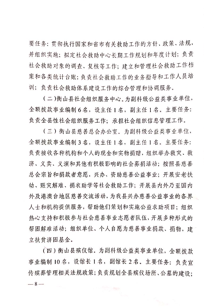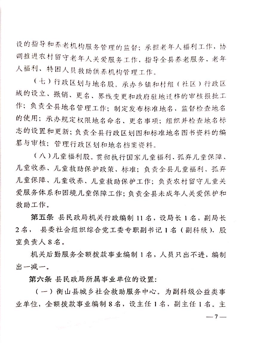 山辦(2019)27號_關於印發《衡山縣民政局職能配置、內設機構和人員編製規定》的通知