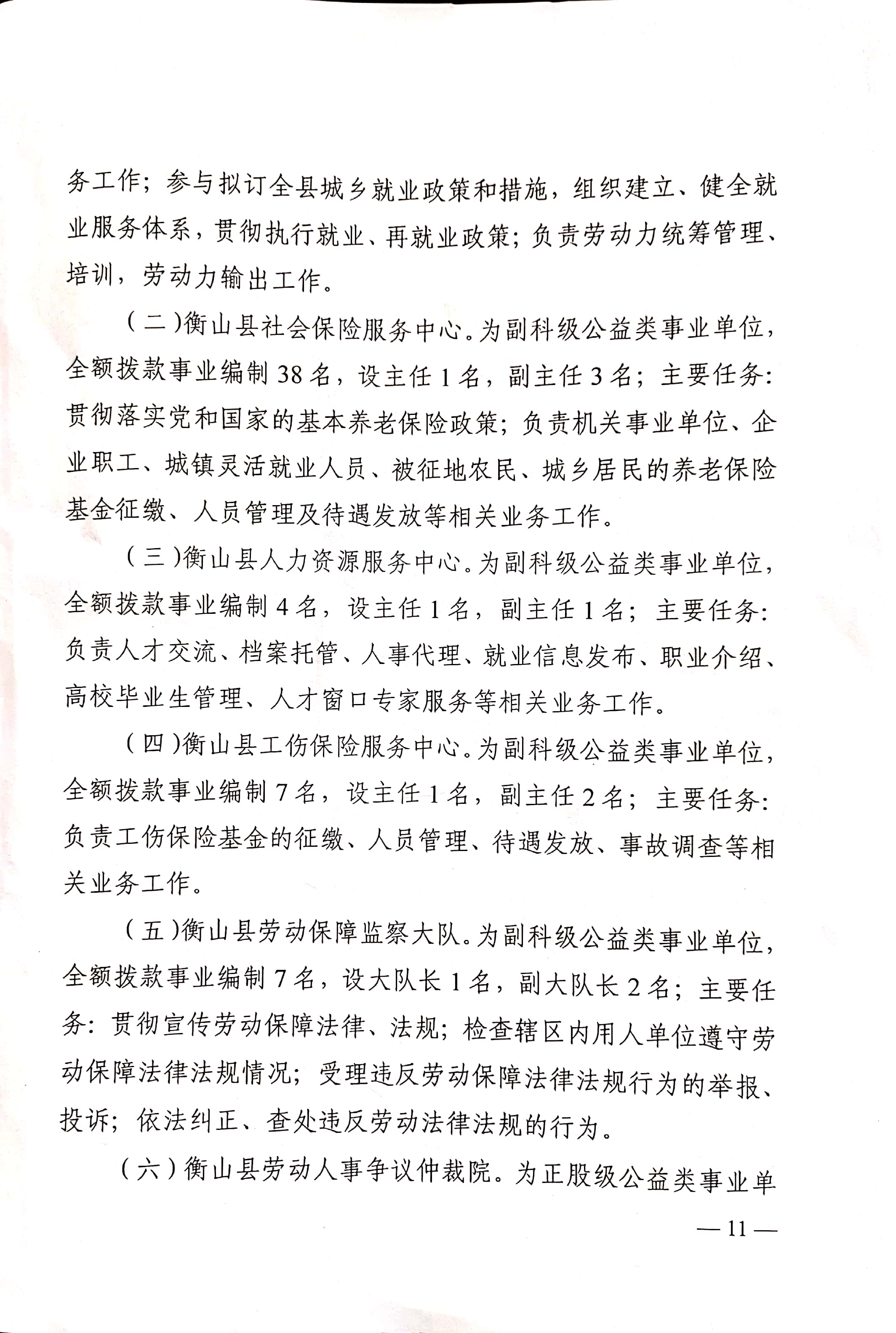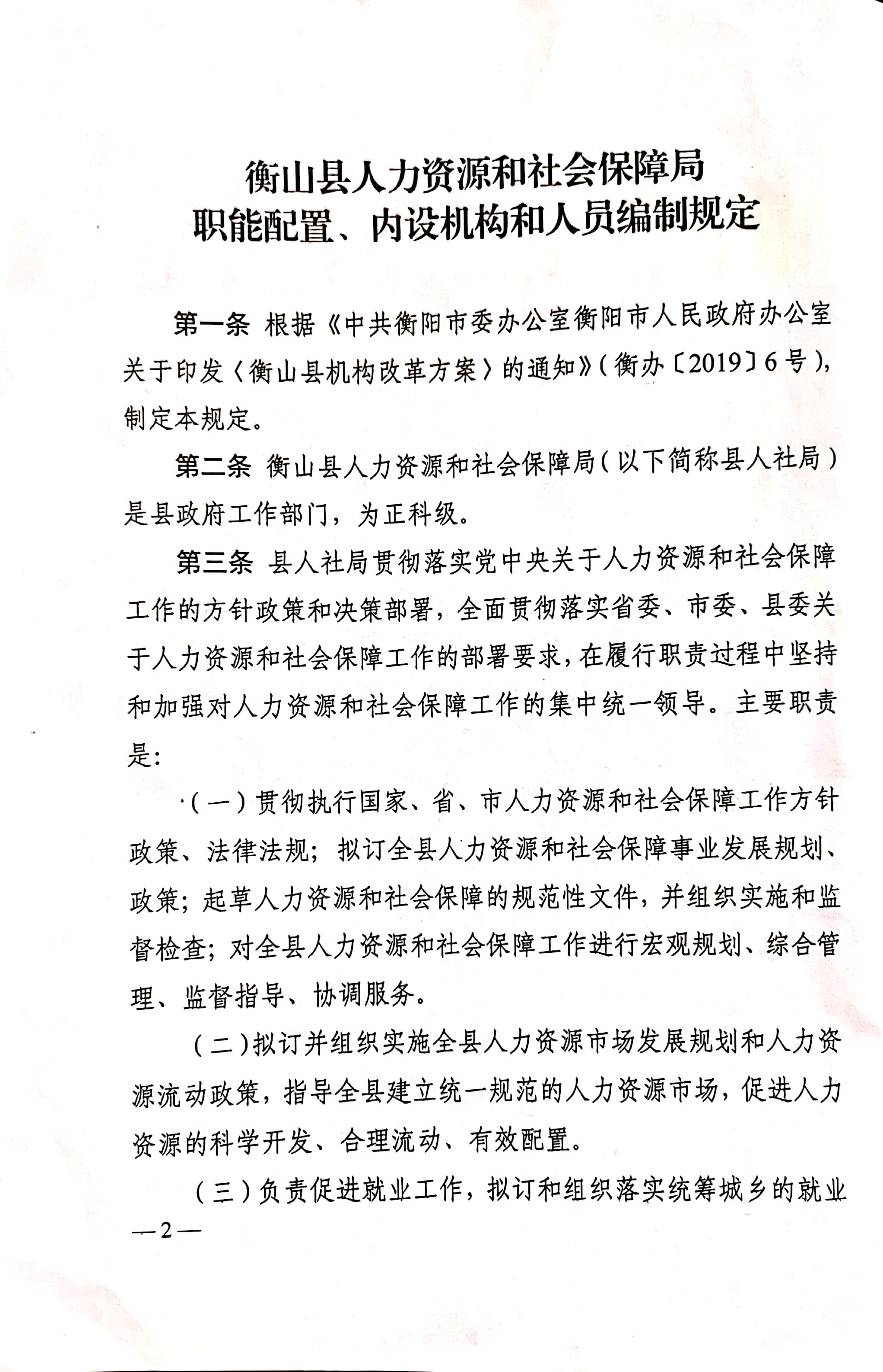 衡山縣人力資源和社會保障局職能配置、內設機構和人員編製規定
