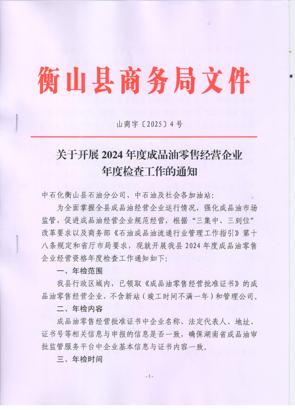 關於開展2024年度成品油零售經營企業年度檢查工作的通知