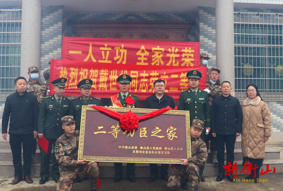 登門送喜報,佳音傳千裏。1月16日上午,石家莊武警部隊相關負責人,縣委常委、常務副縣長陳昌義,縣人武部政委石斌欣一行為榮立“二等功”的現役軍人戴世雄家庭送去“二等功臣之家”牌匾、喜報和慰問金,表達部隊及地方黨委和政府的親切關懷。