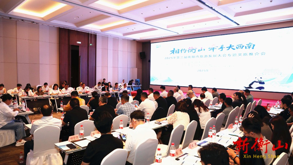 9月18日,“相約衡山·牽手大西南”2025年第三屆衡陽市旅遊發展大會專題招商推介會走進四川省成都市。衡陽市政協副主席、衡山縣委書記戴新賢誠摯邀約蓉城各界人士走進衡山,享受觀光休閑之樂,實現投資興業之機。縣人大常委會主任曠誌軍,縣政協主席唐年初參加推介會,縣委常委、宣傳部部長穀蓉主持推介會。