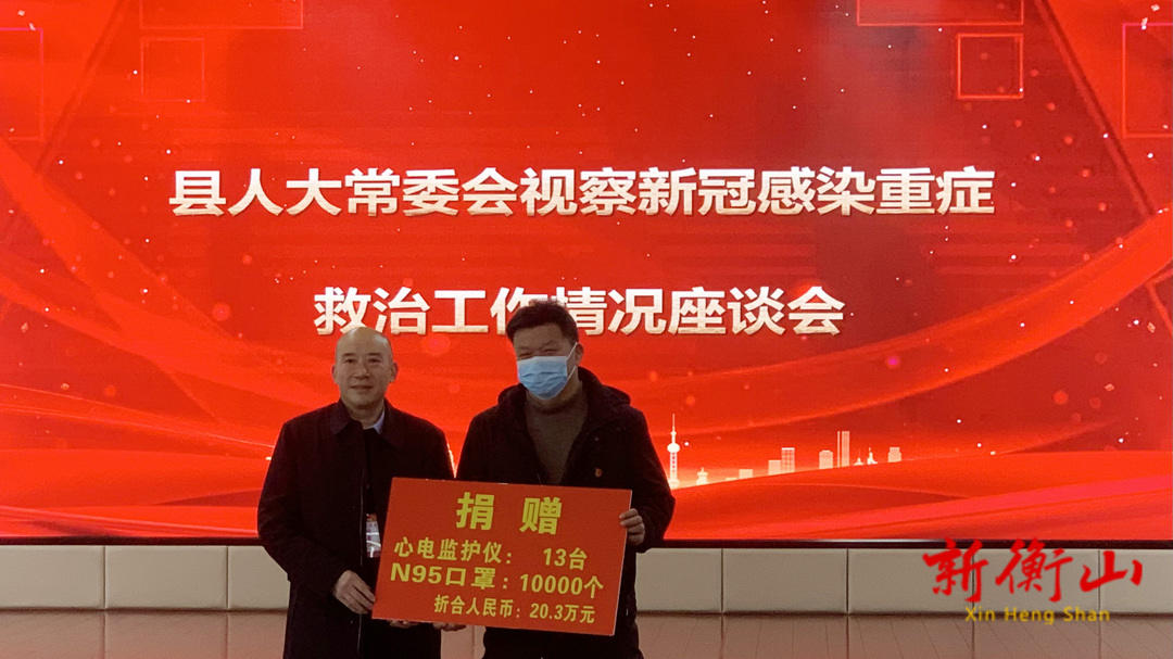 視察中,縣人民醫院匯報了新冠病毒感染重症救治工作開展情況。市縣人大代表向縣人民醫院捐贈了心電監護儀13台,N95口罩10000個,捐贈醫療物資總金額20.3萬元。