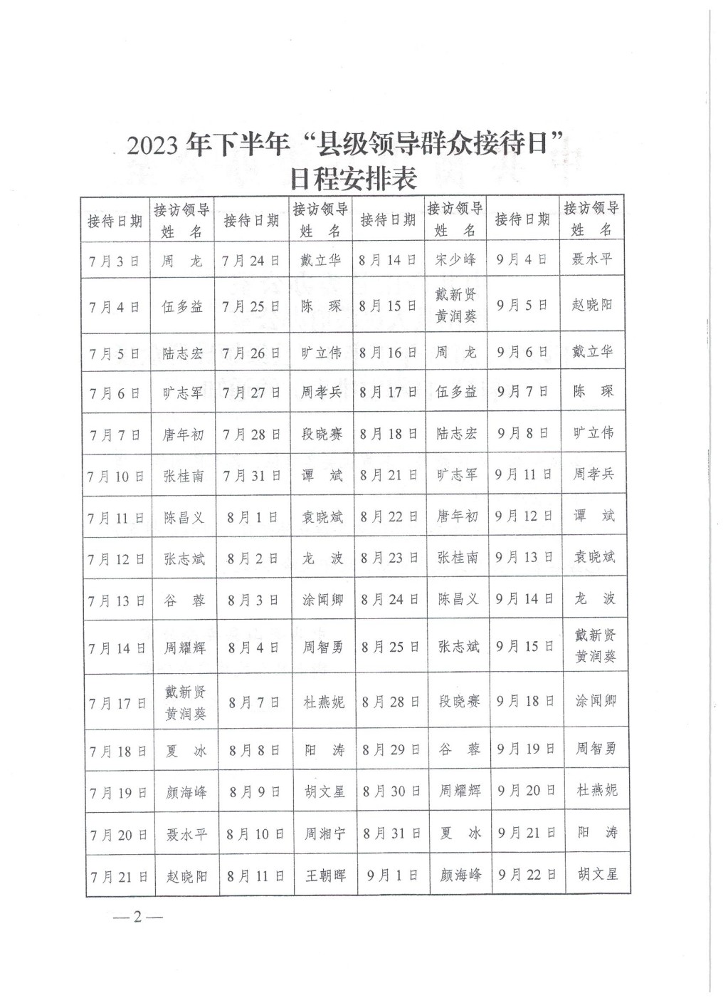 2023年下半年“縣級領導群眾接待日”日程安排表