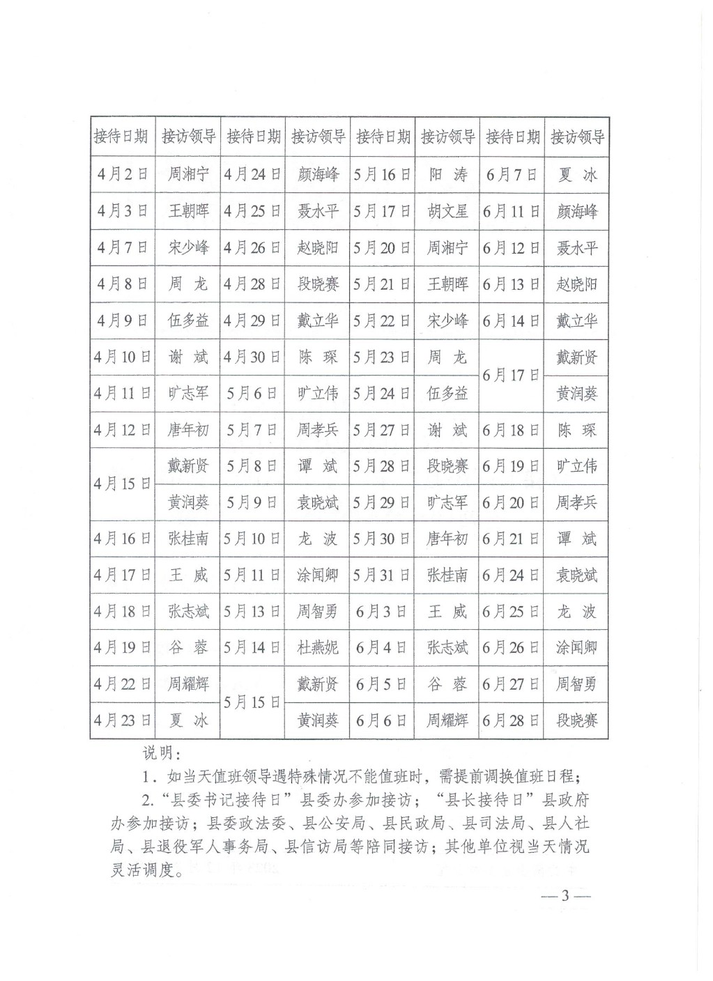 2024年上半年“縣級領導群眾接待日”日程安排表