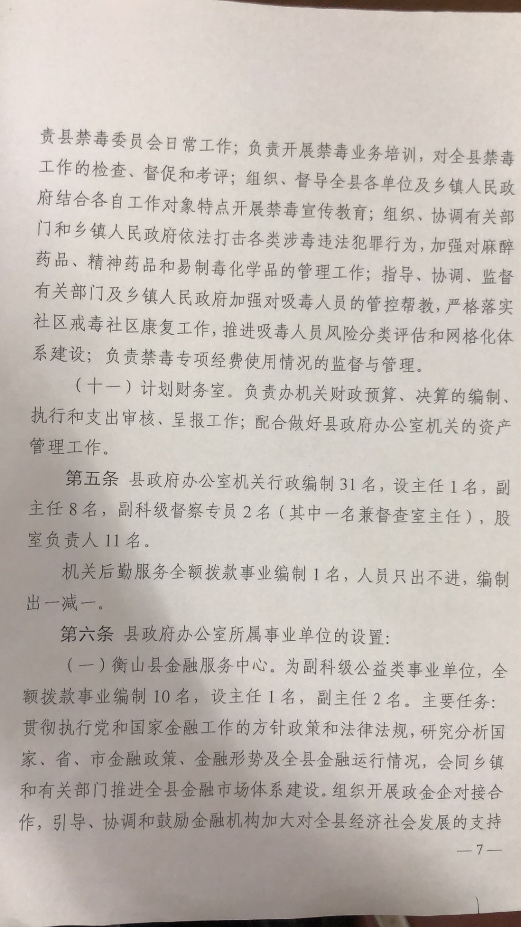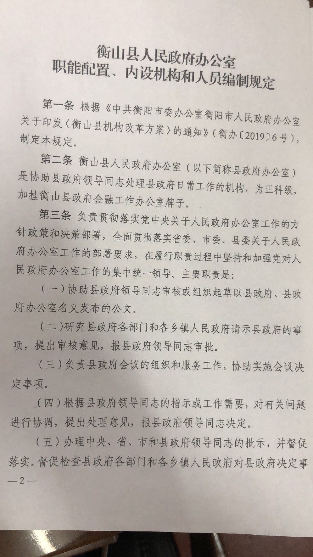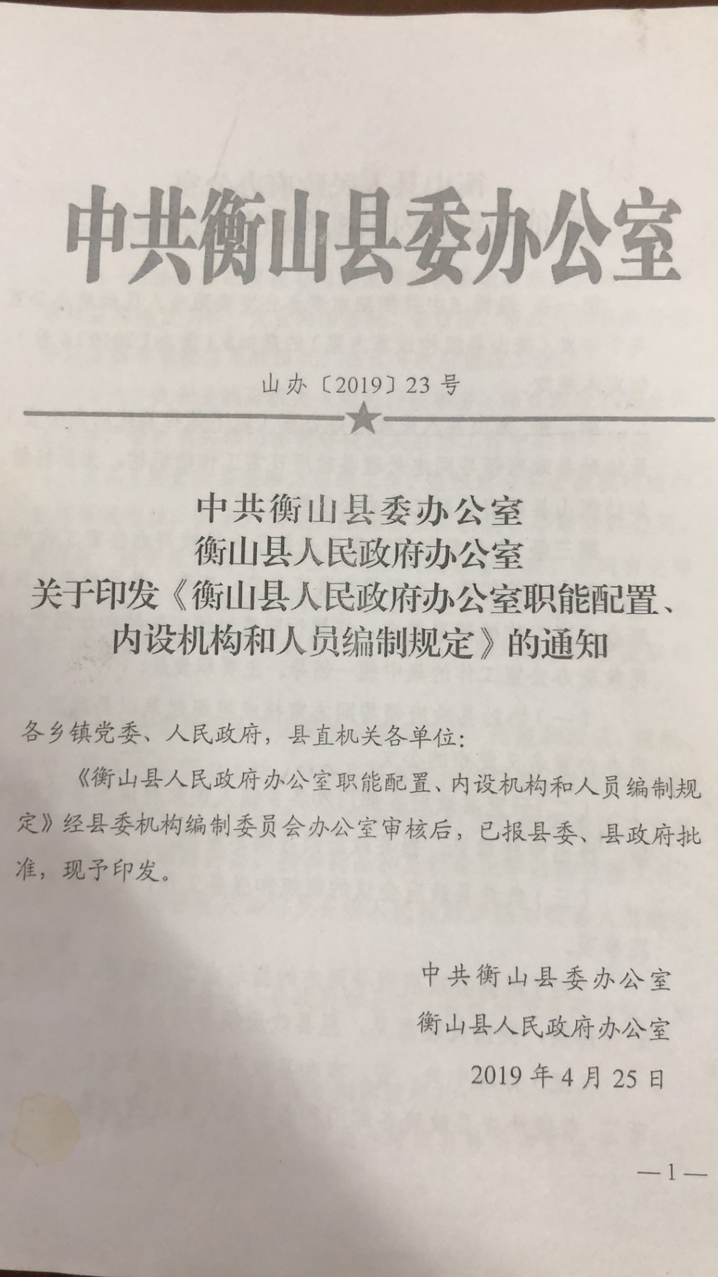 關於印發《衡山縣人民政府辦公室職能配置、內設機構和人員編製規定》的通知