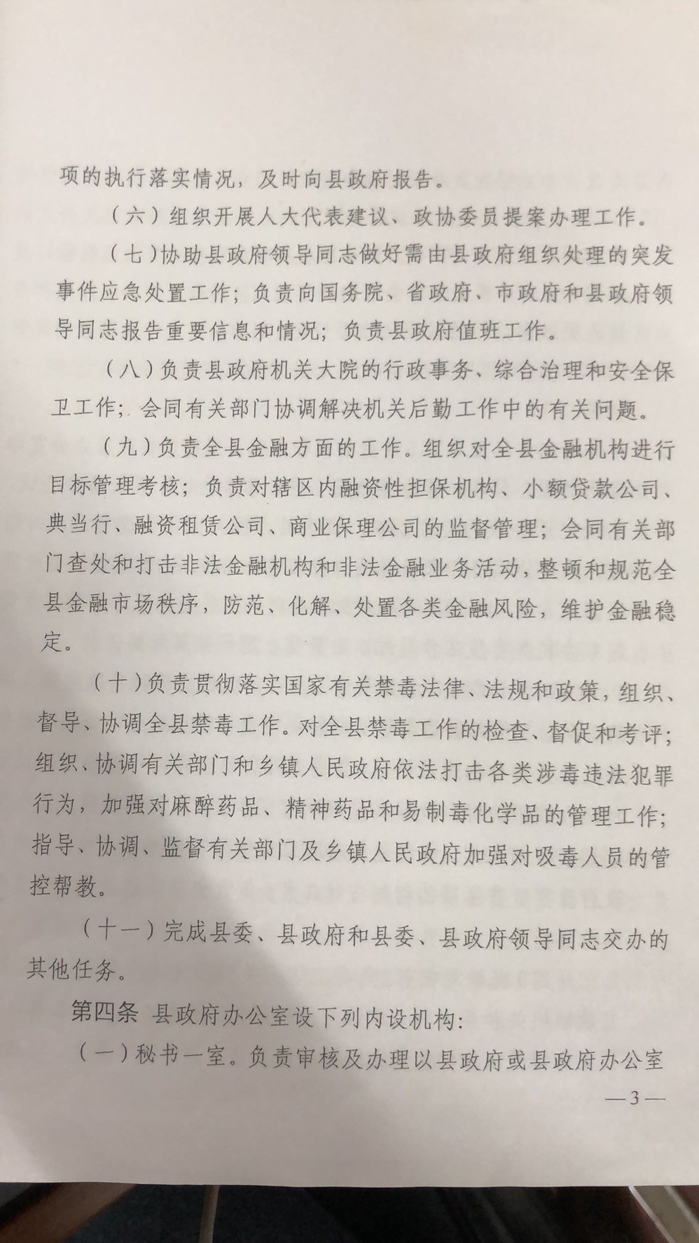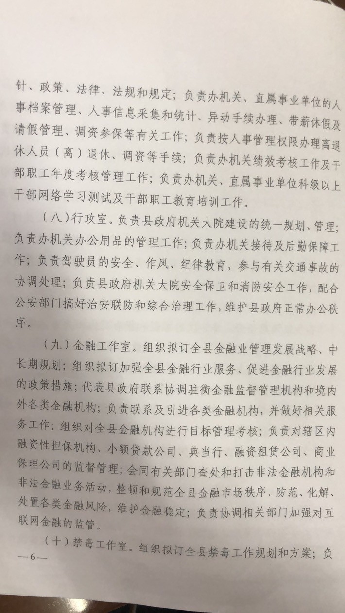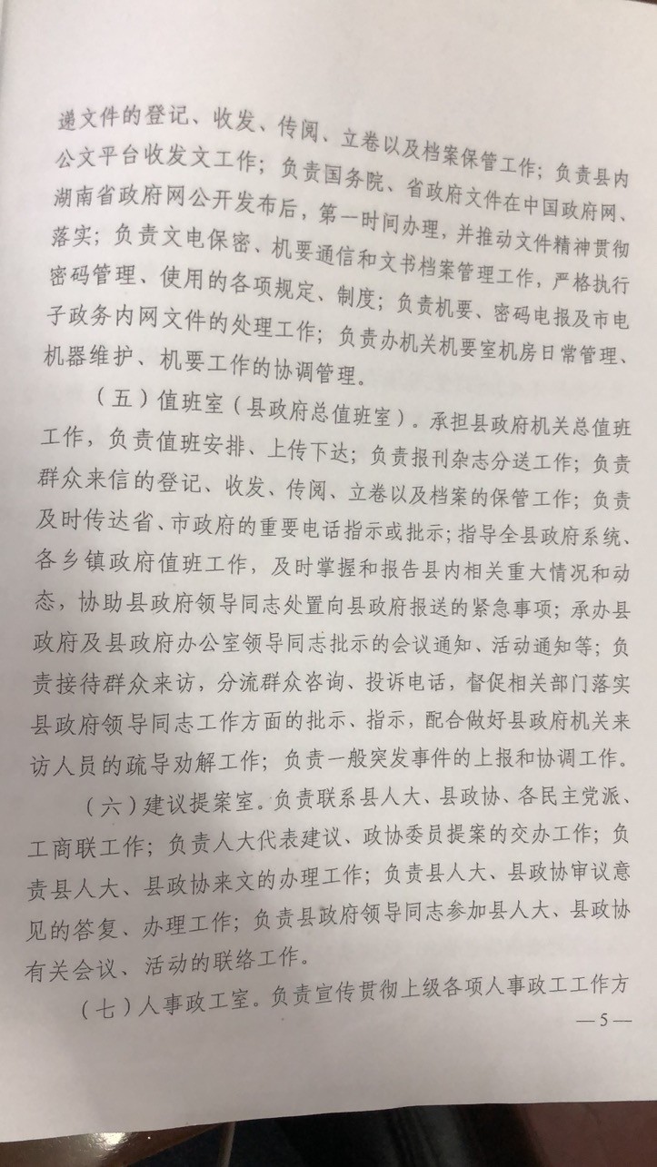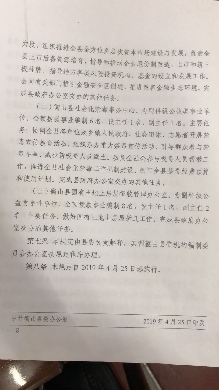 關於印發《衡山縣人民政府辦公室職能配置、內設機構和人員編製規定》的通知