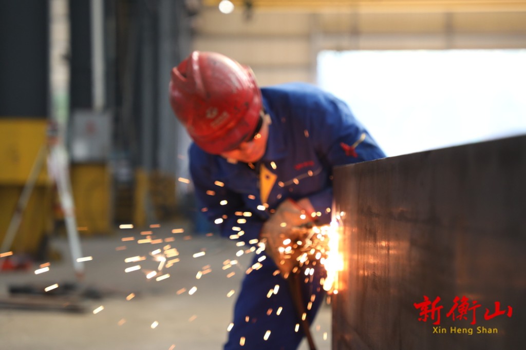 在恒嶽重鋼的生產車間裏,工人們量尺、畫線、定軸線位、吊料、焊接定位、組裝焊接,正在忙著趕製一批最新的訂單。