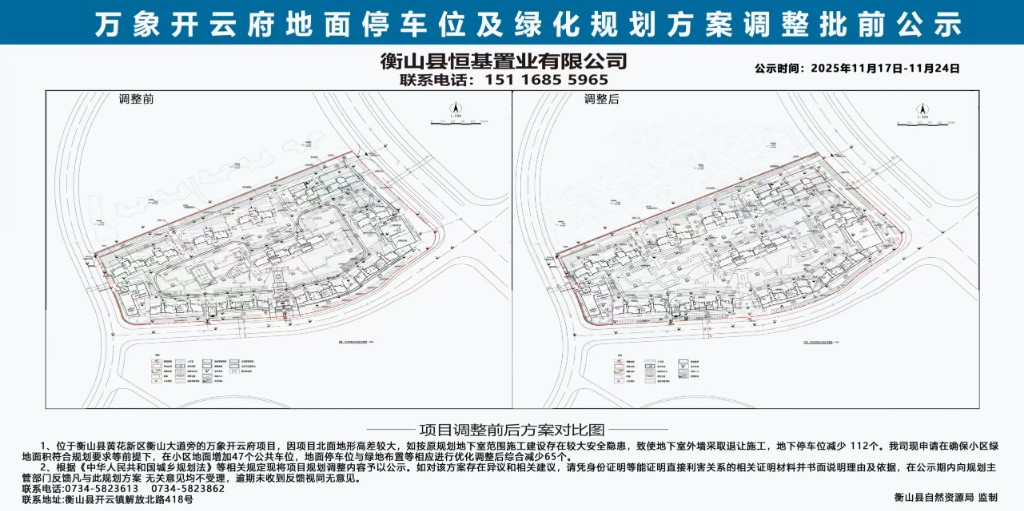 萬象開雲府地麵停車位及綠化規劃方案調整批前公示