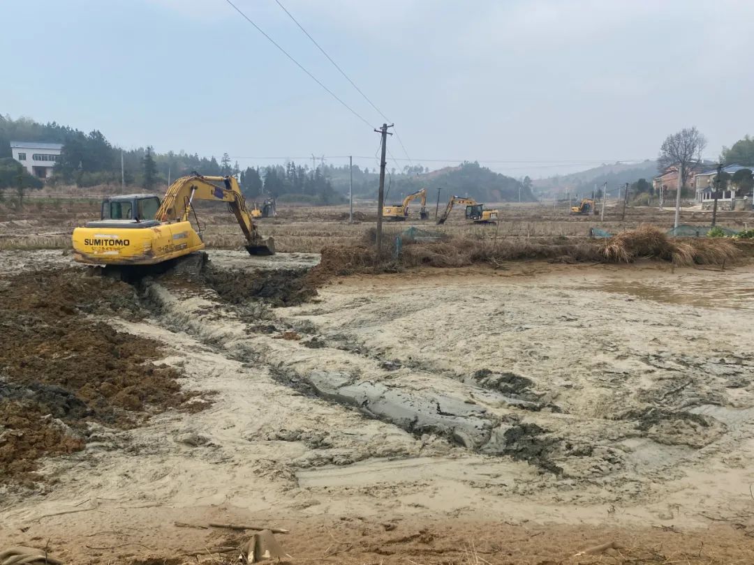 近日,石門社區高標準農田建設現場一片蓬勃景象,20餘台挖掘機正開展土地平整作業,蜿蜒的舊田埂被推平重整,零散的“巴掌田”整合為開闊連片的高標準農田。工程團隊同步推進“退塘還耕”綜合治理,對低效坑塘、荒廢水域科學規劃,通過生態修複與土地複墾相結合的方式,既盤活閑置土地資源又兼顧了生態保護。