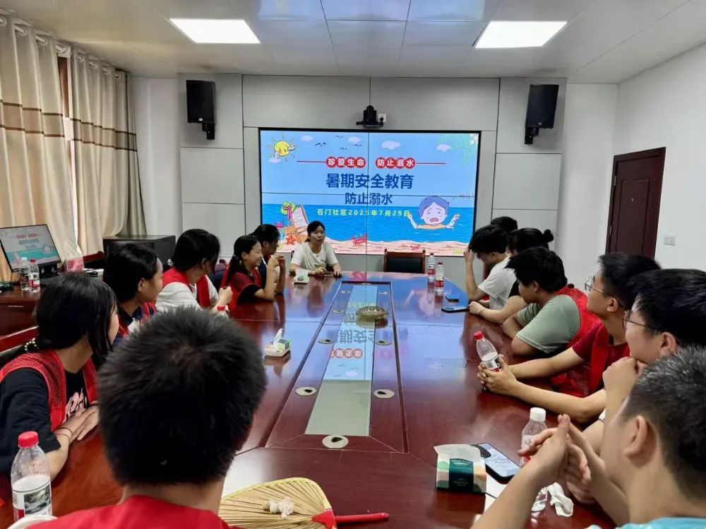 社區會議室裏,20餘名高中生、大學生正圍坐聆聽。誌願者化身安全講師,分別從遠離野外危險水域、遊泳注意事項、同伴落水應對、不慎落水自救四個方麵進行講解。誌願者將“野塘暗流突襲”“泳池抽筋失控”等風險場景,拆解成真實案例:“河邊淺灘看著平靜,水下或許暗藏落差陡坎,一腳踩空就可能滑向深水區……” ,當談及“同伴落水該先呼救還是施救”,不少人舉手分享見聞,在問答互動裏,原本生硬的安全條文,化作可感可悟的避險攻略。