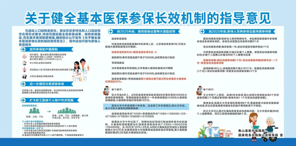 2025年度衡山縣城鄉居民基本醫療保險參保倡議: 一、依法參保,履行法律賦予的意義 《中華人民共和國基本醫療衛生與健康促進法》明確指出:“公民有依法參加基本醫療保險的權利和義務。”依法參保,既是每位公民的法定義務,也是享受醫保待遇的基本前提。关键词2倡議全縣居民積極參保,履行法律賦予的義務,並敦促家人、親友、合作夥伴增強參保意識,積極參加基本醫療保險,共同享有這份保障。 二、全民參保,享受國家政策福利 2025年度居民醫保籌資標準不低於1070元(個人繳費400元、財政補助不低於670元),財政補助占籌資標準的62.62%以上。個人平均每天僅需1.1元,就能低成本為自己築起一道健康防線。國家為鼓勵全民參保,對連續參保人員和零報銷人員實施醫保待遇激勵政策。居民參保後可享受基本醫保門診報銷、慢特病報銷、住院報銷,還可自動獲得大病保險資格,享受大病保險報銷,困難群眾還可享受醫療救助。 三、互助共濟,攜手守護家庭安康 大家攜手前行,用實際行動承擔起社會責任,共同守護家庭安康。基本醫療保險給全民提供了共同履行責任的“互助共濟”式製度化保障,有必要為自己及家人參保,讓遭遇不幸者不再為救治費用擔心。