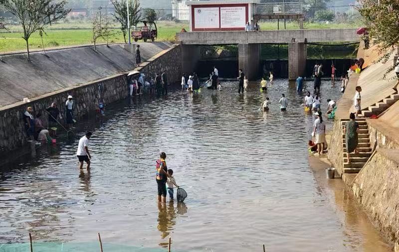 “媽媽,看我捉到魚啦!”8月29日上午,衡山縣長江鎮石橋鋪社區的荊陂河畔,清脆的童聲伴著水花聲此起彼伏。當天上午,荊陂河親子樂園正式開園,數十名居民帶著孩子手持撈魚網,在清澈的河水中摸魚捉蝦,偶爾有小魚從網間溜過,引得孩子們一陣歡笑。不遠處的上遊古橋古樹文化園區,有著260多年曆史的普濟橋巍然橫跨河麵,110年樹齡的樸樹枝冠如傘,幾位居民圍坐在石桌前,悠閑地話著家常。