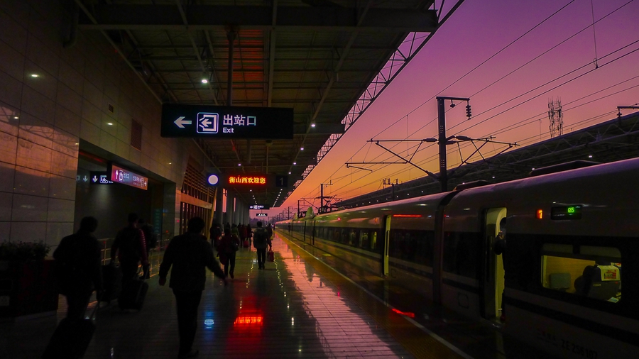 總建築麵積18608平方米,由主站房和站台雨棚組成。其中,站房麵積7275平方米,站台雨棚10788平方米,地下通道545平方米;站台長500米,站台雨棚長450米。設計年客流量165萬人次,最高聚集人數500餘人,高峰期可滿足1000人左右同時候車。站內設購票窗口10個,顯示屏每10分鍾更新餘票1次。候車廳設進站匝6個,其中磁性票自動驗票與紙質票人工檢票口分別為5個和1個。車站由縣人民政府和武廣客運專線有限公司共同投資建設,武廣客運有限公司承建。2008年10月16日開工,2009年2月19日封頂,同年10月竣工投入使用。武廣高鐵通車後,每天停靠衡山西站列車23趟。此後,停靠列車趟數和進出旅客人數與日俱增,現可直通北京西站、上海虹橋站,抵達時間分別在7小時、5小時左右。衡山西站配套設施為公交車站、站前廣場和集旅遊休閑服務、綜合商貿服務、旅遊產品加工於一體的開雲新城。公交車站每天進出,大巴、中巴、的士100餘輛,5分鍾左右即可抵達衡山縣城和南嶽衡山風景區。站前廣場占地60畝,平坦整潔,四周綠樹成蔭,鳥語花香,入夜燈光璀燦,係旅遊者欣賞衡山西站獨特造型的最佳位置。