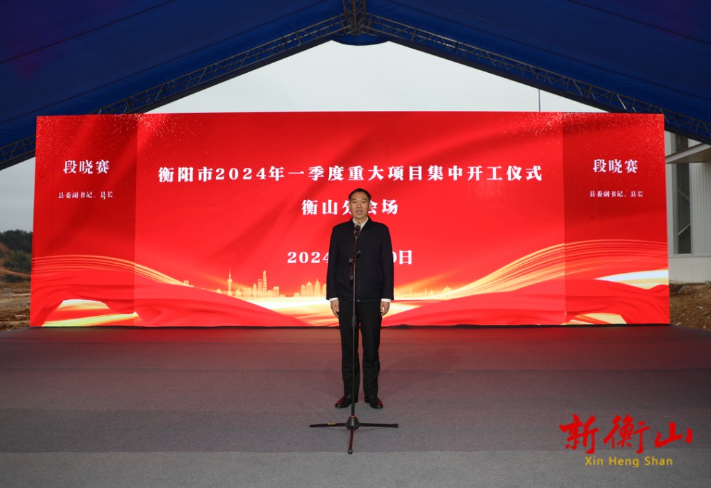 2月20日上午,2024年衡山縣重大項目集中開工儀式舉行,衡山智能製造產業園一期(南區)等12個項目集中開工,總投資達60.4億元。縣委副書記、縣長段曉賽出席並宣布項目開工。儀式由縣委副書記、政法委書記謝斌主持,縣委常委、常務副縣長王威在儀式上致辭。