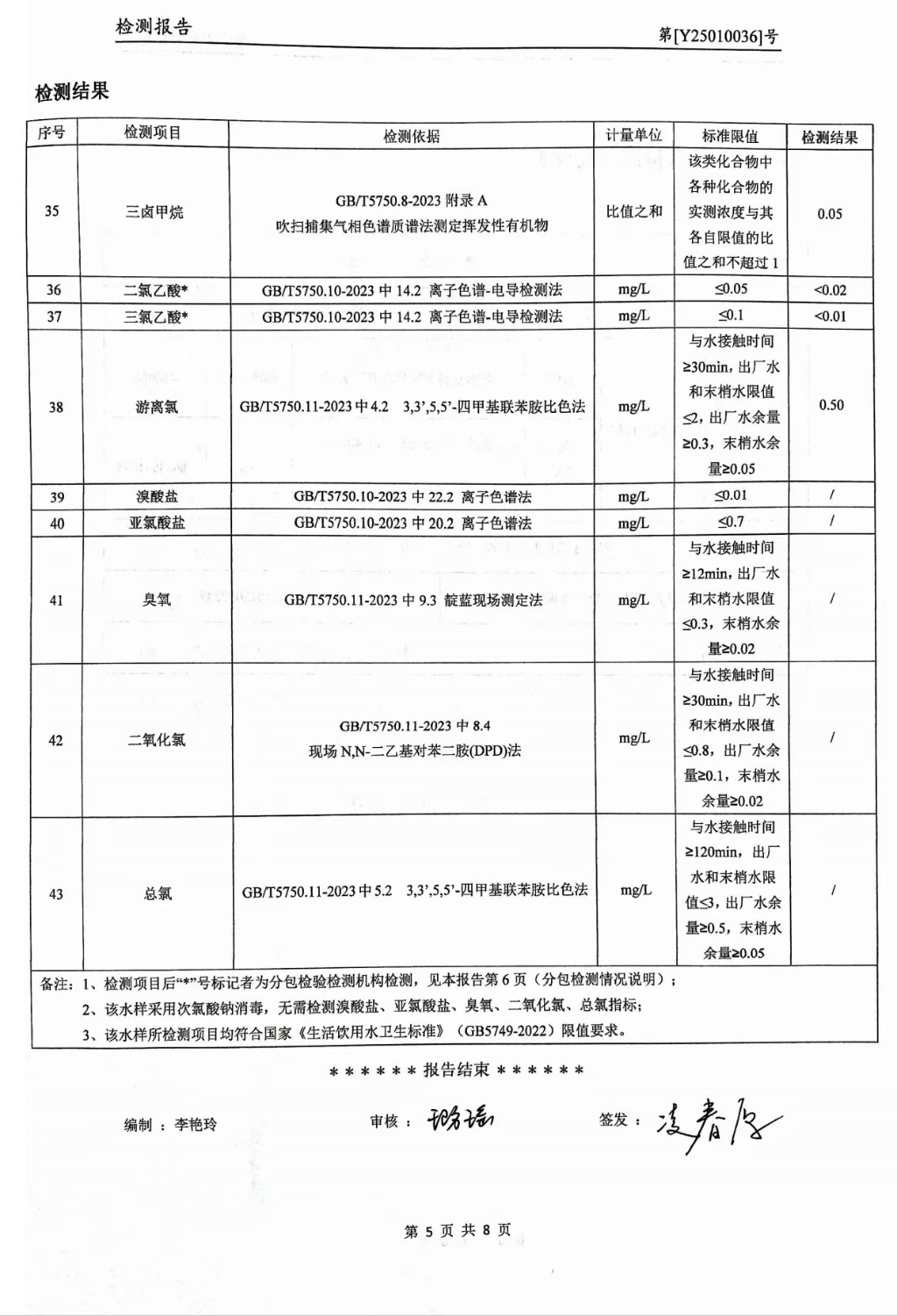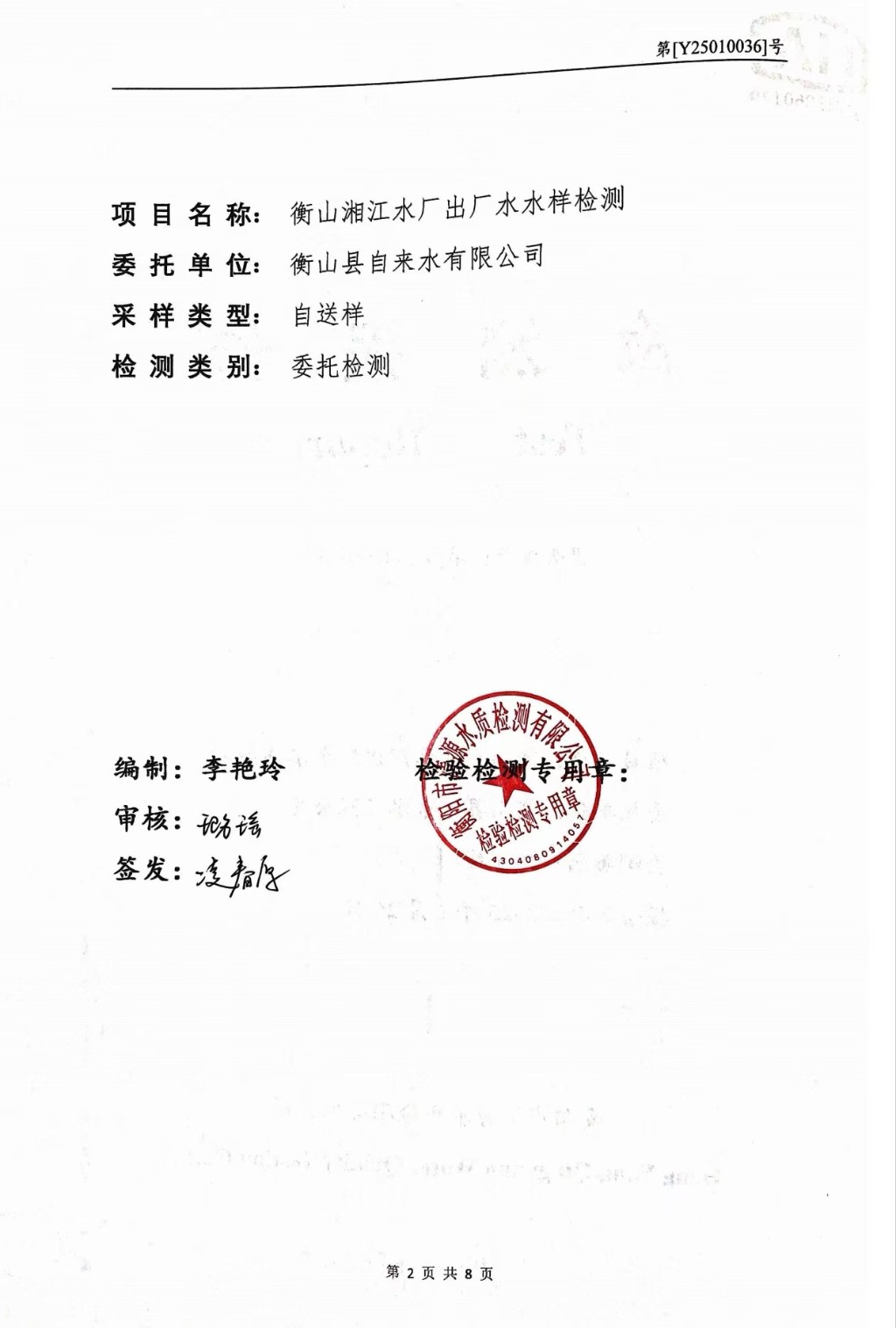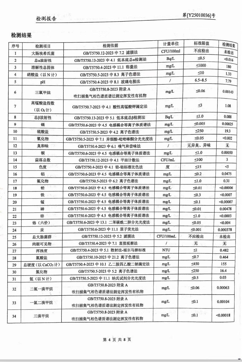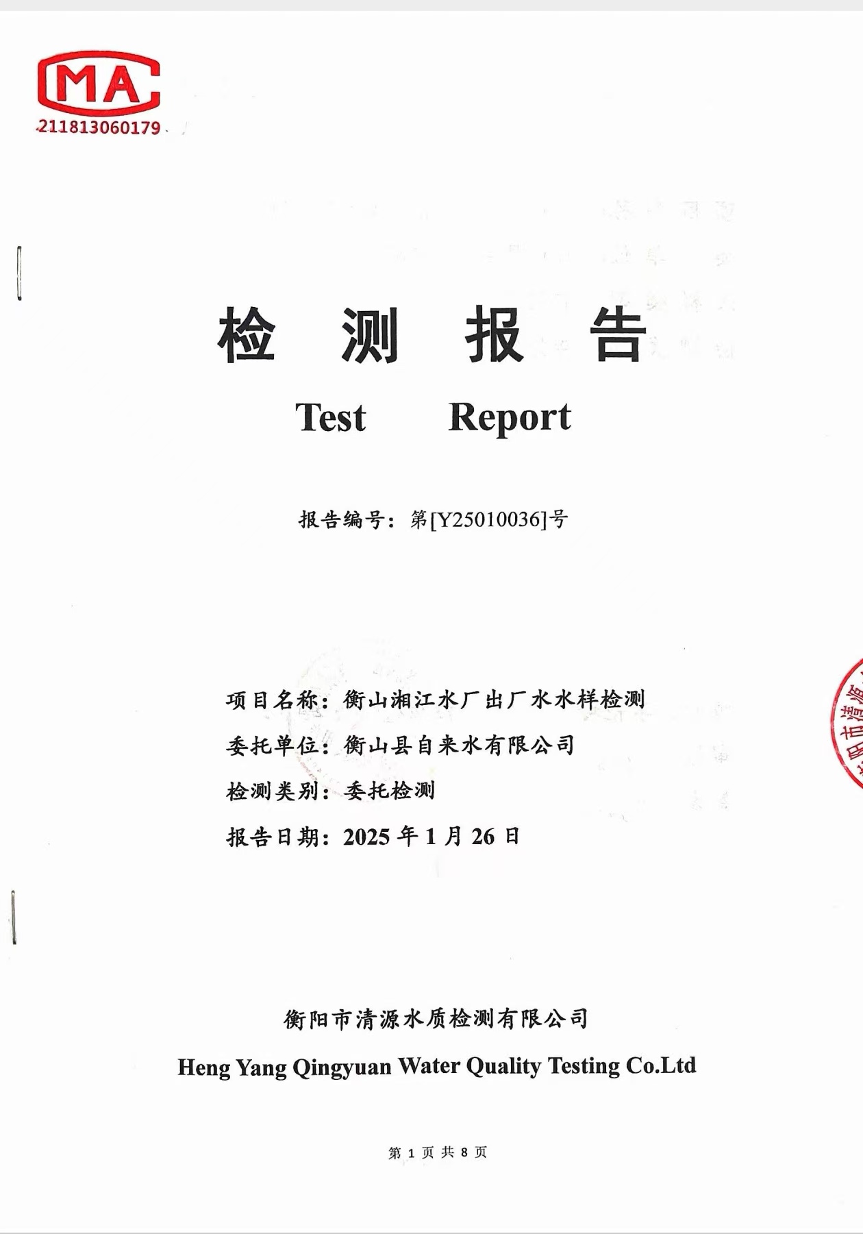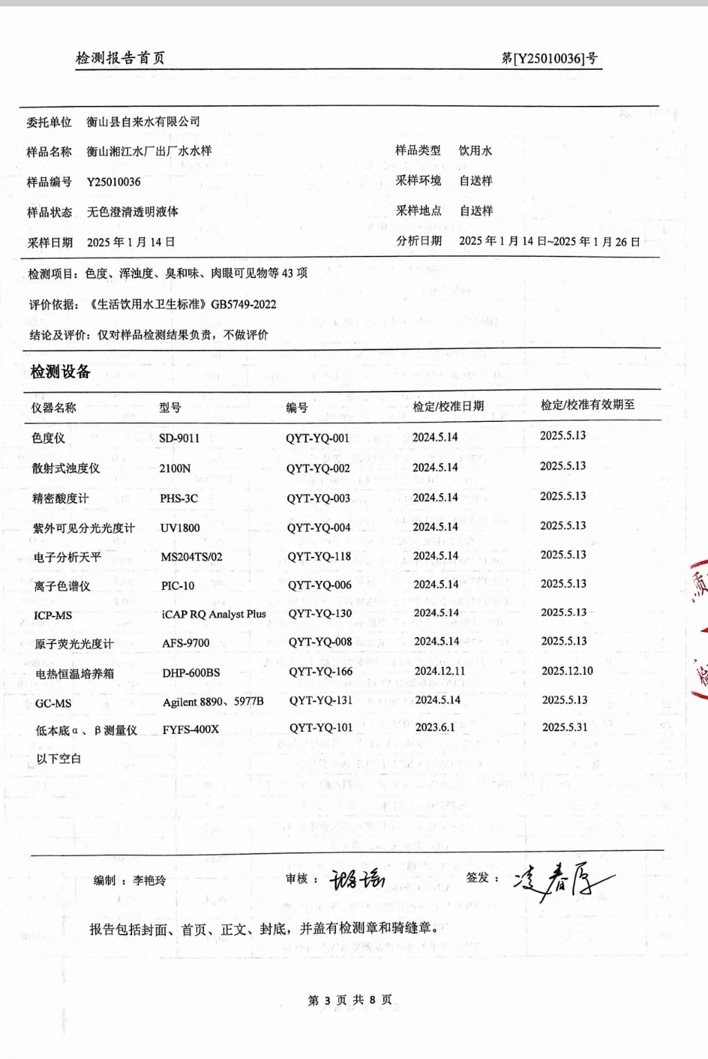 提高服務質量、保障供水安全(2025年1月水質檢測報告)