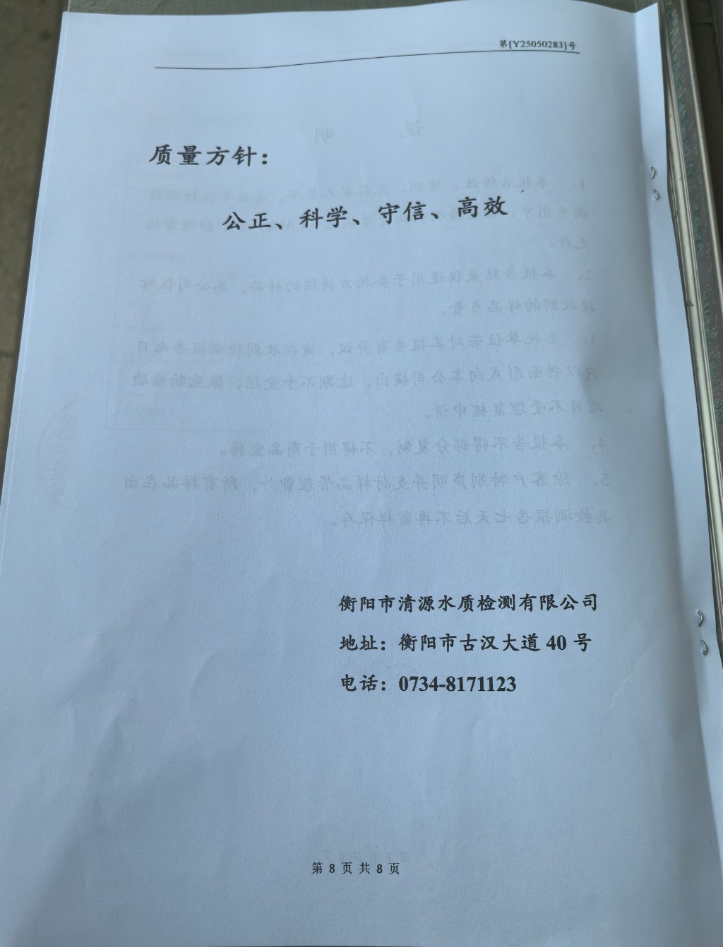 提高服務質量、保障供水安全(2025年5月水質檢測報告)