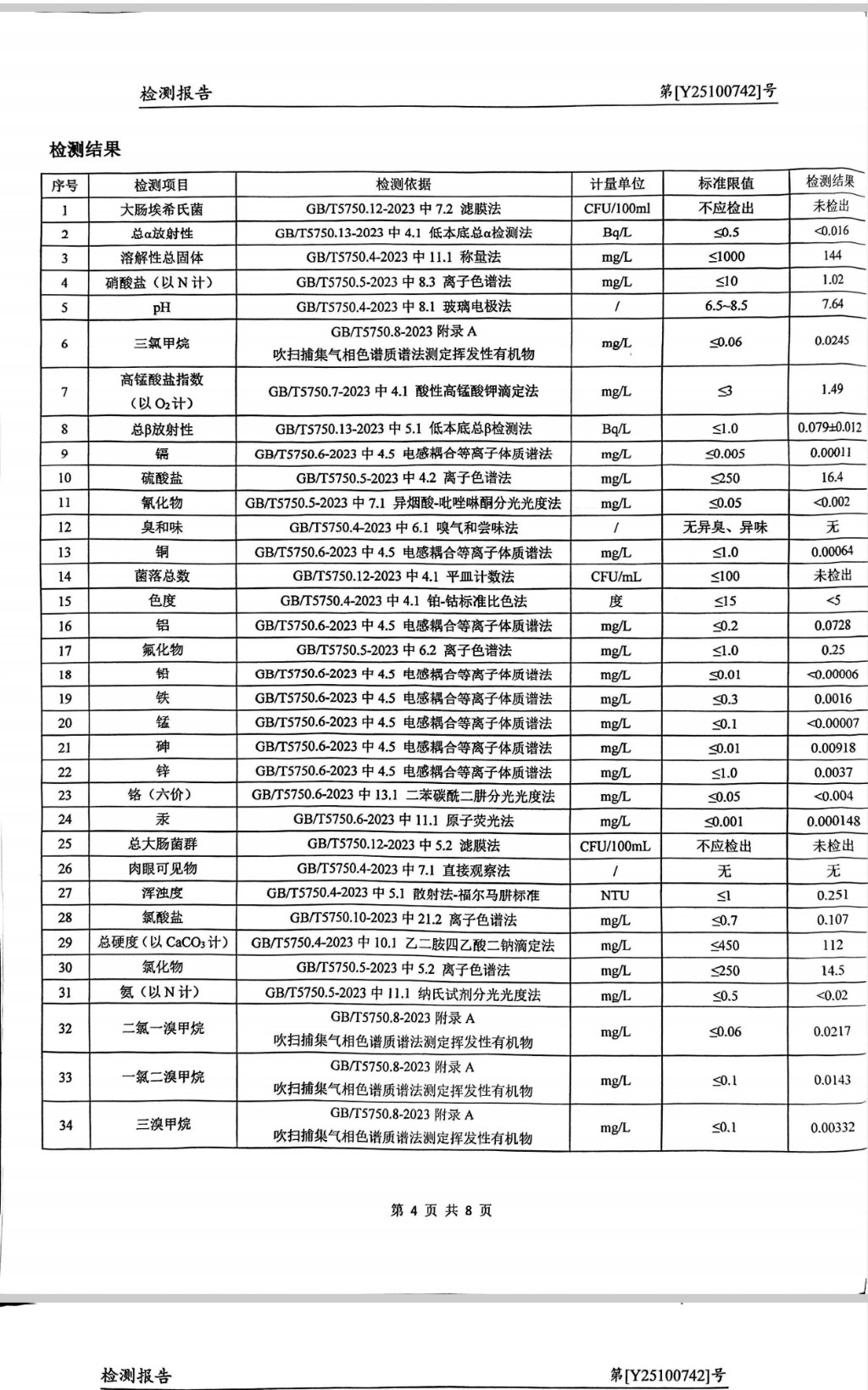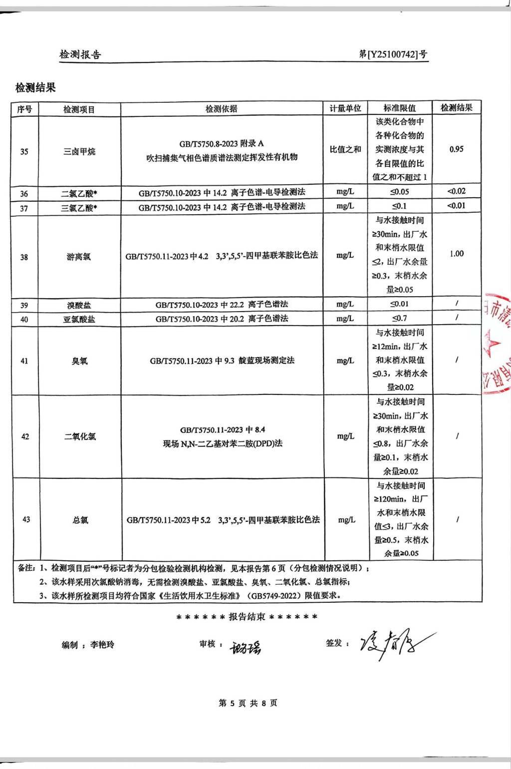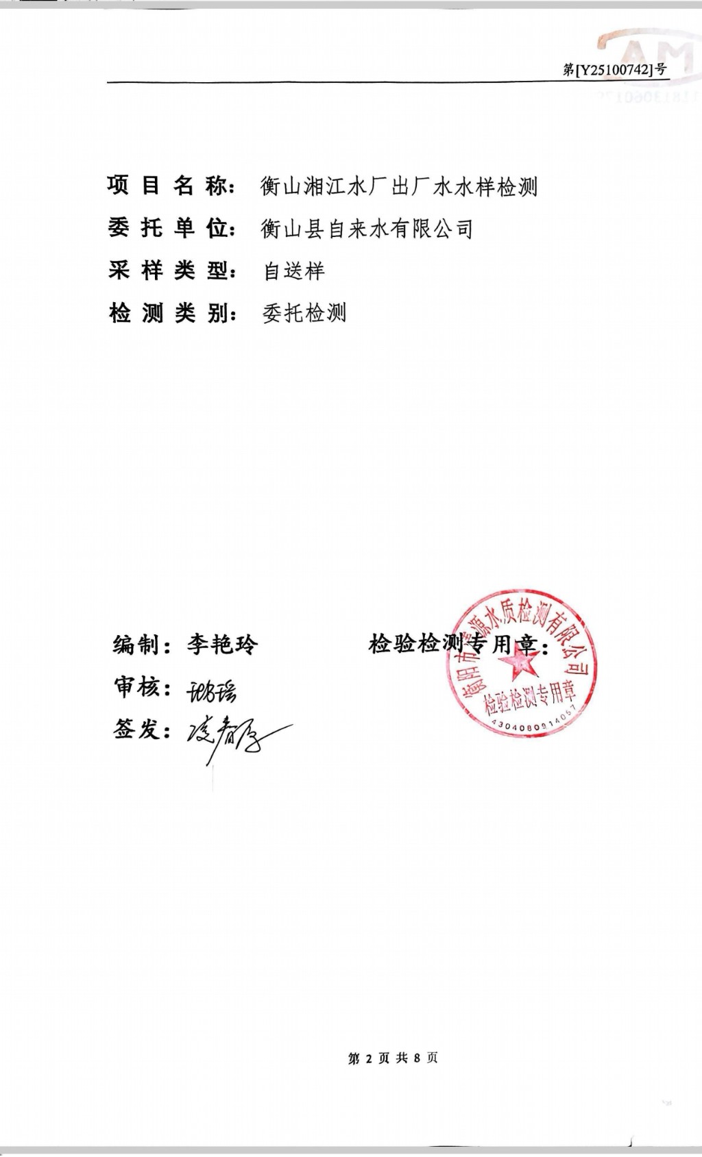 提高服務質量、保障供水安全(2025年10月水質檢測報告)