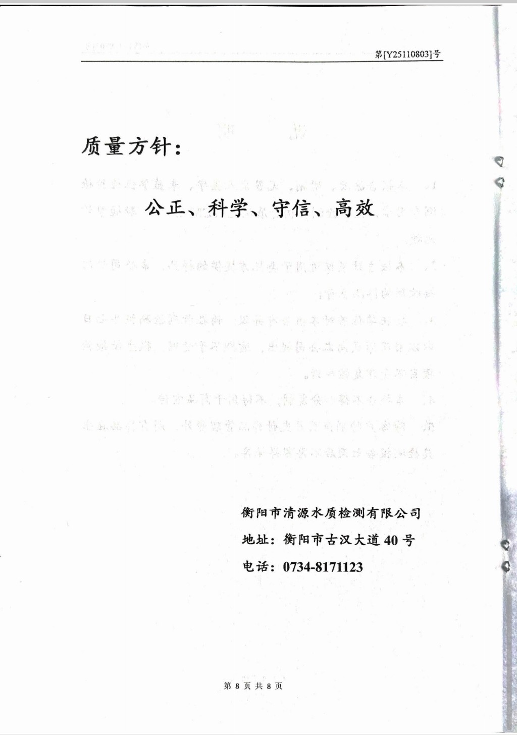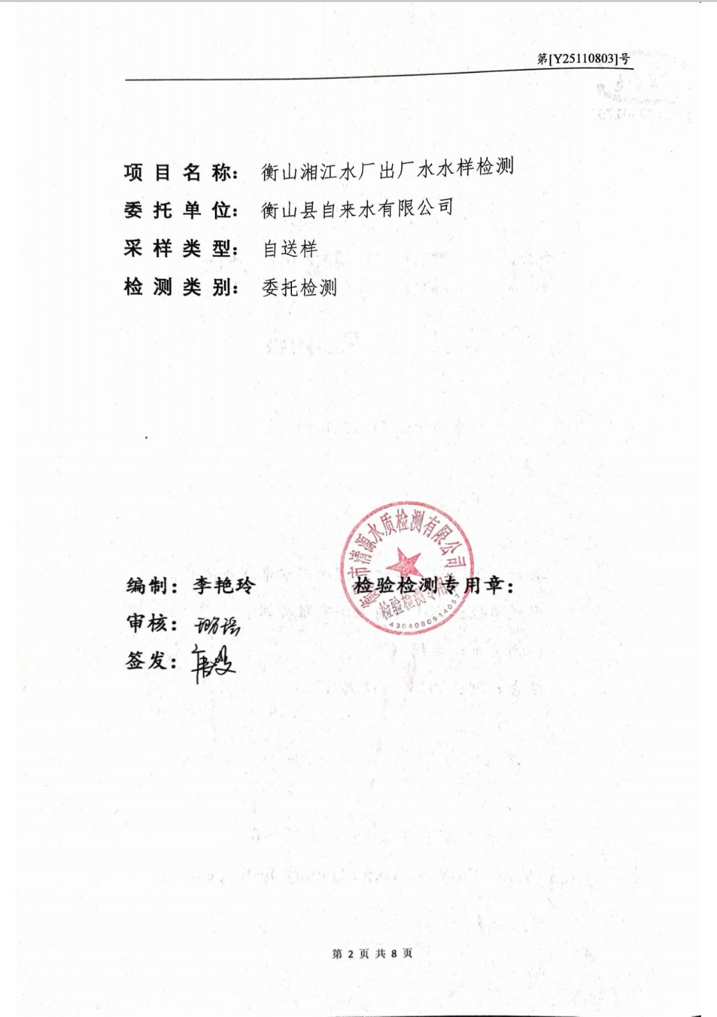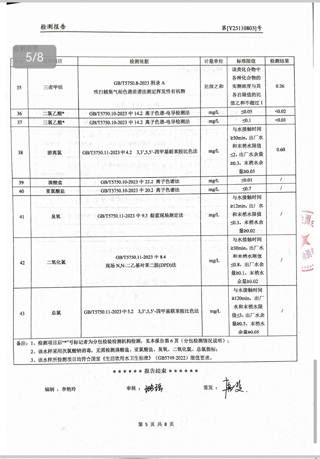 提高服務質量、保障供水安全(2025年11月水質檢測報告)