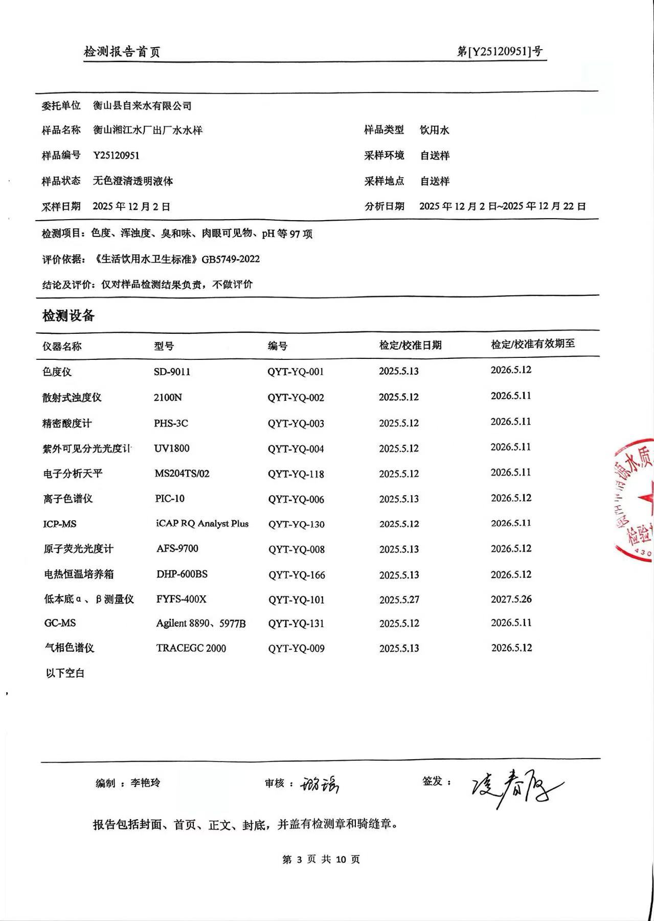 提高服務質量、保障供水安全(2025年12月水質檢測—年分析報告)
