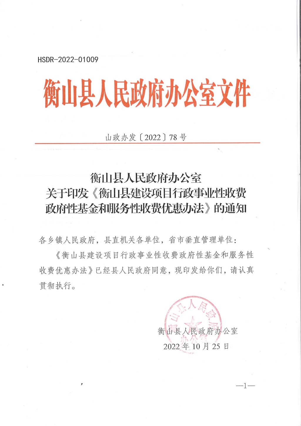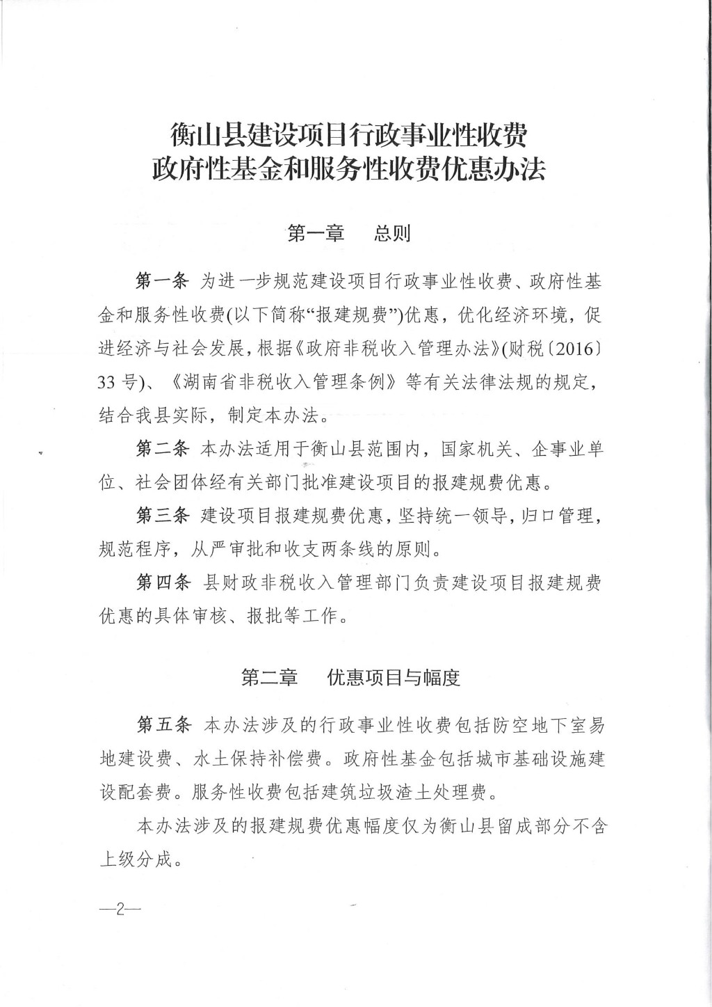 衡山縣人民政府辦公室關於印發《衡山縣建設項目行政事業性收費政府性基金和服務性收費優惠辦法》的通知