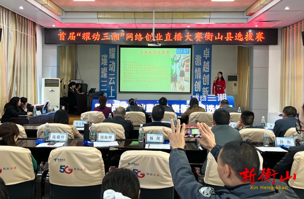 11月22日上午,湖南省首屆“耀動三湘”網絡創業直播大賽衡山選拔賽在縣人社局成功舉行。縣領導趙曉陽、胡文星出席。