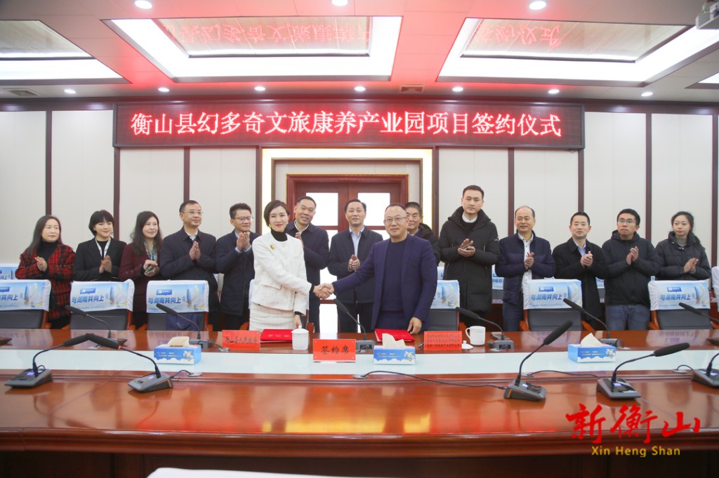 12月12日,衡山“幻多奇文旅康養產業園”項目投資合作框架協議簽署儀式在縣人民政府四樓舉行。縣委書記戴新賢出席,縣委副書記、縣長段曉賽主持儀式。